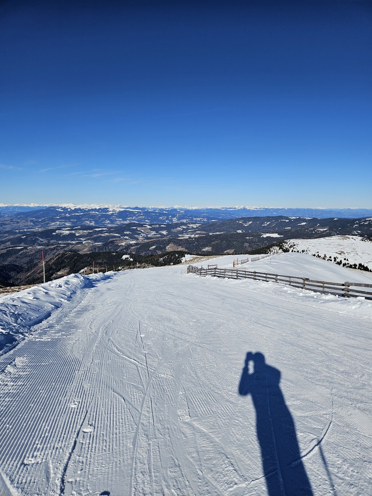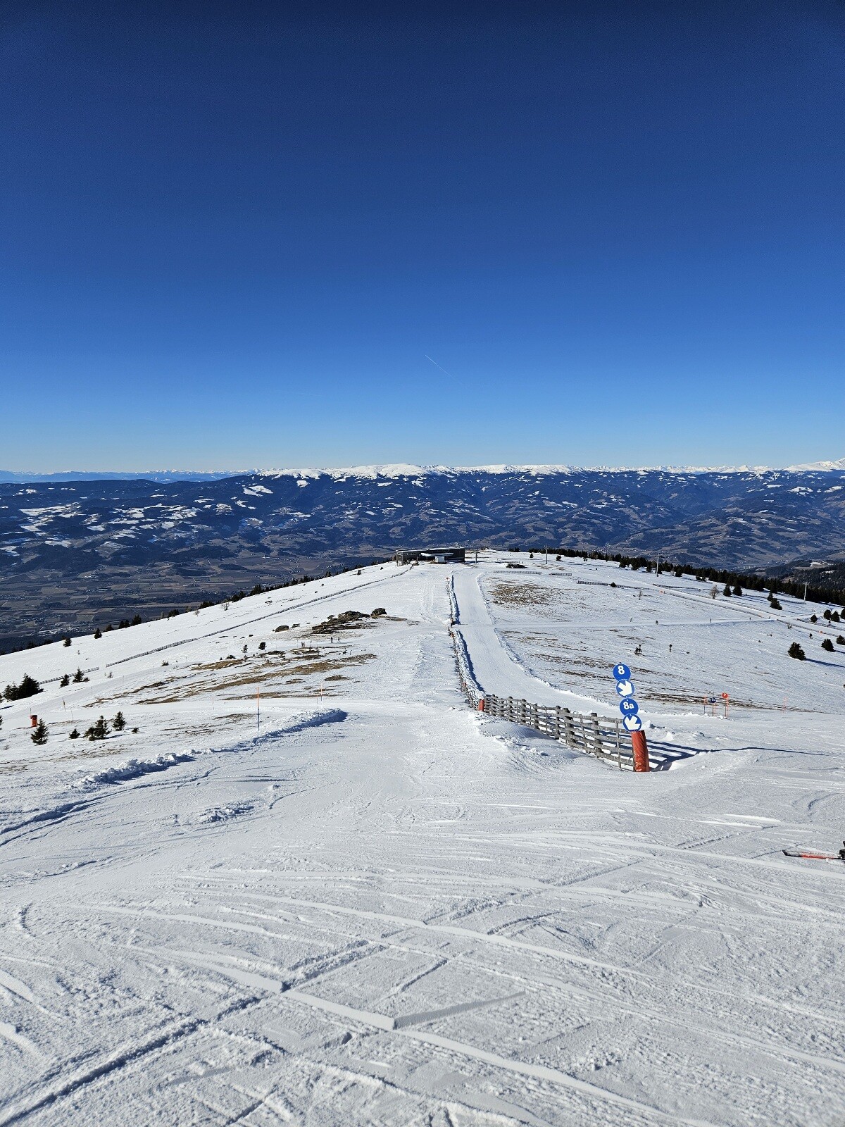 An einem sonnigen Jännertag war die Koralpe als Erstbesuch dran. Von Wolfsberg, im Osten Kärntens, schlängelt sich eine kurvige Straße etwa 10 km hinauf auf etwa 1400 hm. Und was findet man hier in der Abgeschiedenheit? Einen Parkautomaten...