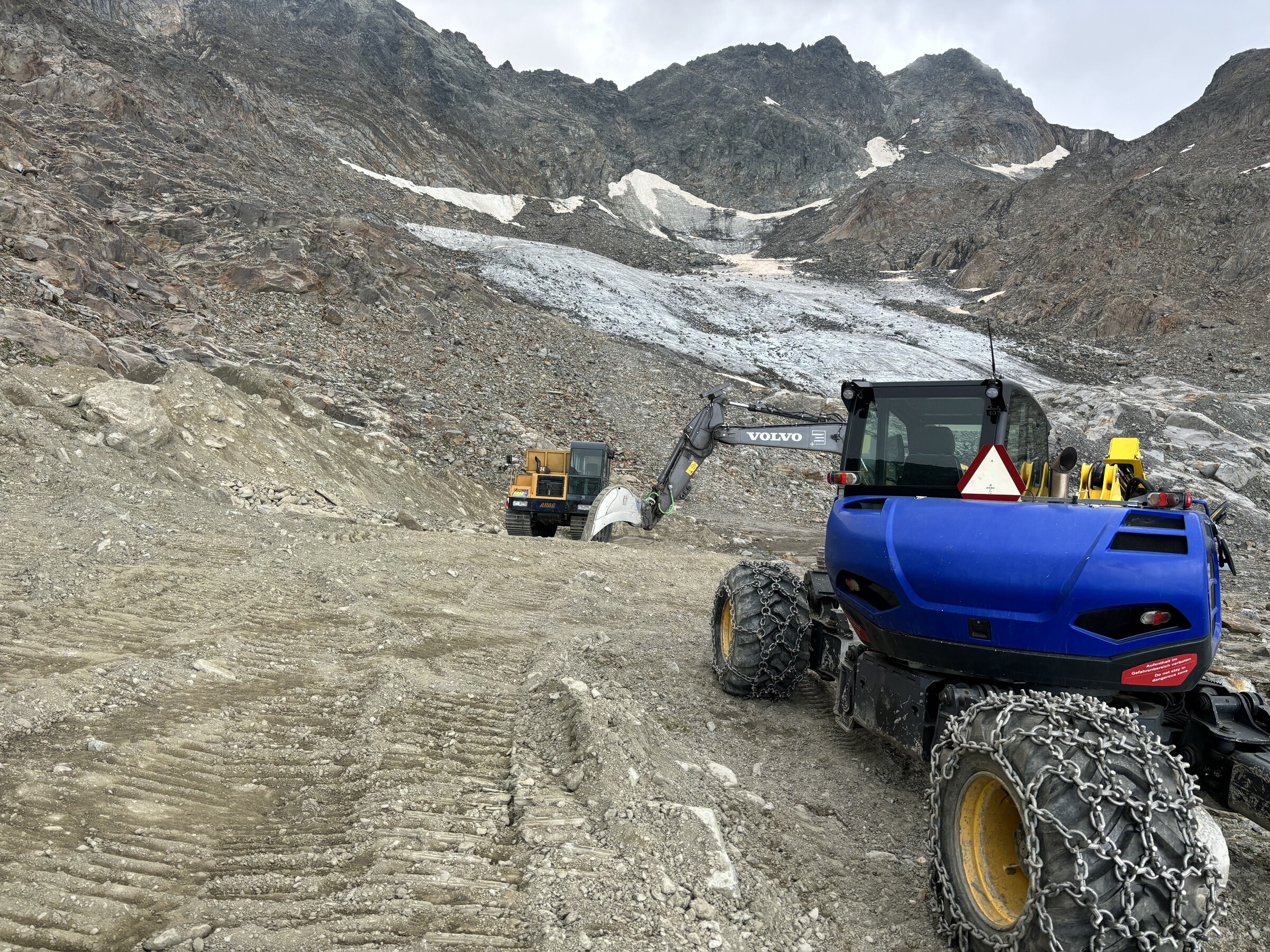 Heute wurde begonnen die Vermattung am Gurschengletscher am Gemsstock zu entfernen. Der St. Annafirm ist leider bald weg (Sonnenpiste Nr. 70) und unten am Gletscherende finden arbeiten mit schweren Gerät statt, unklar warum. Ein paar Bilder vom Aufstieg gestern.