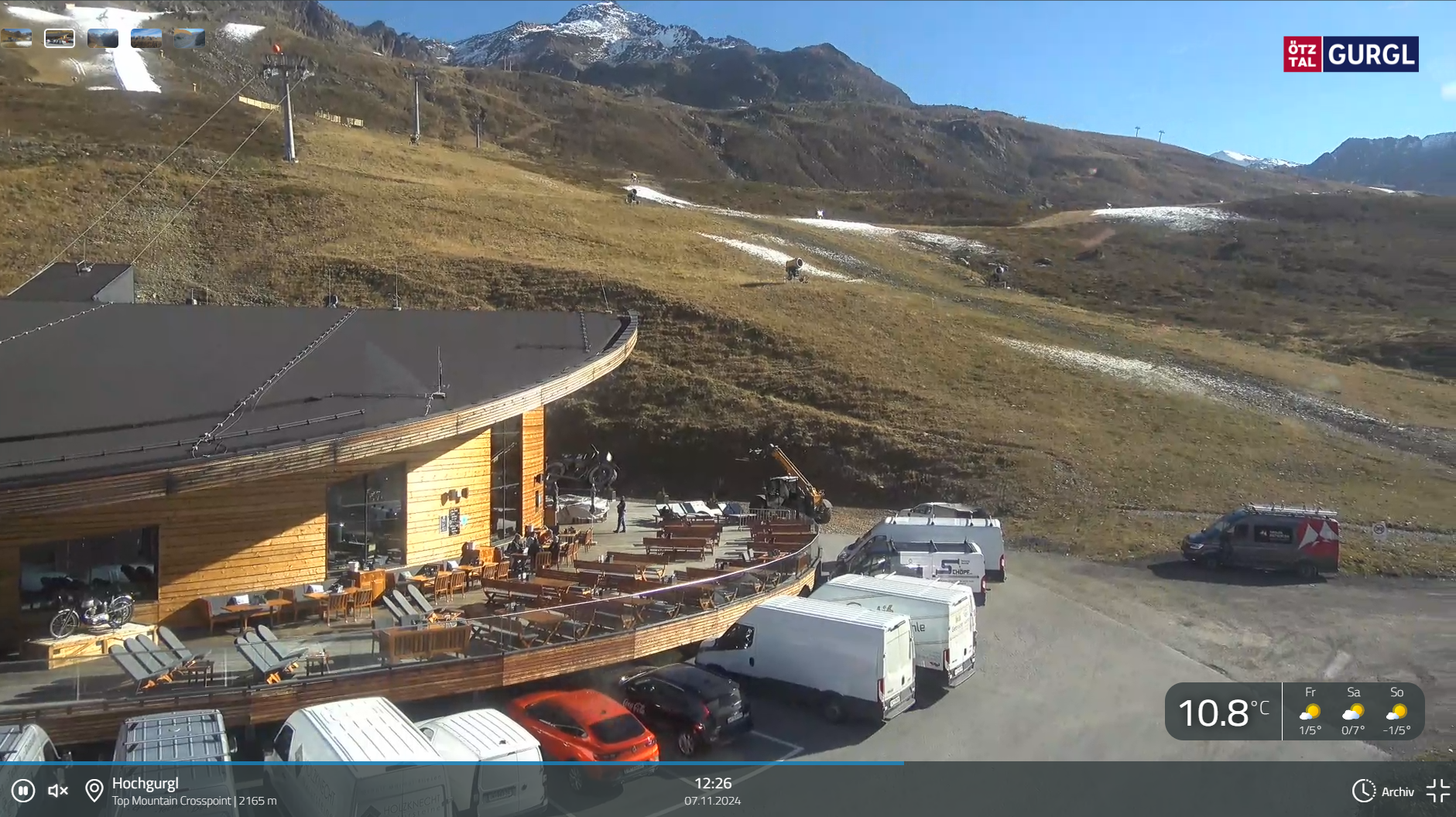 In Hochgurgl laufen die Schneekanonen, was mich doch etwas wundert, da auf der Webcam eine Temperatur von 6 Grad angezeigt wird.
