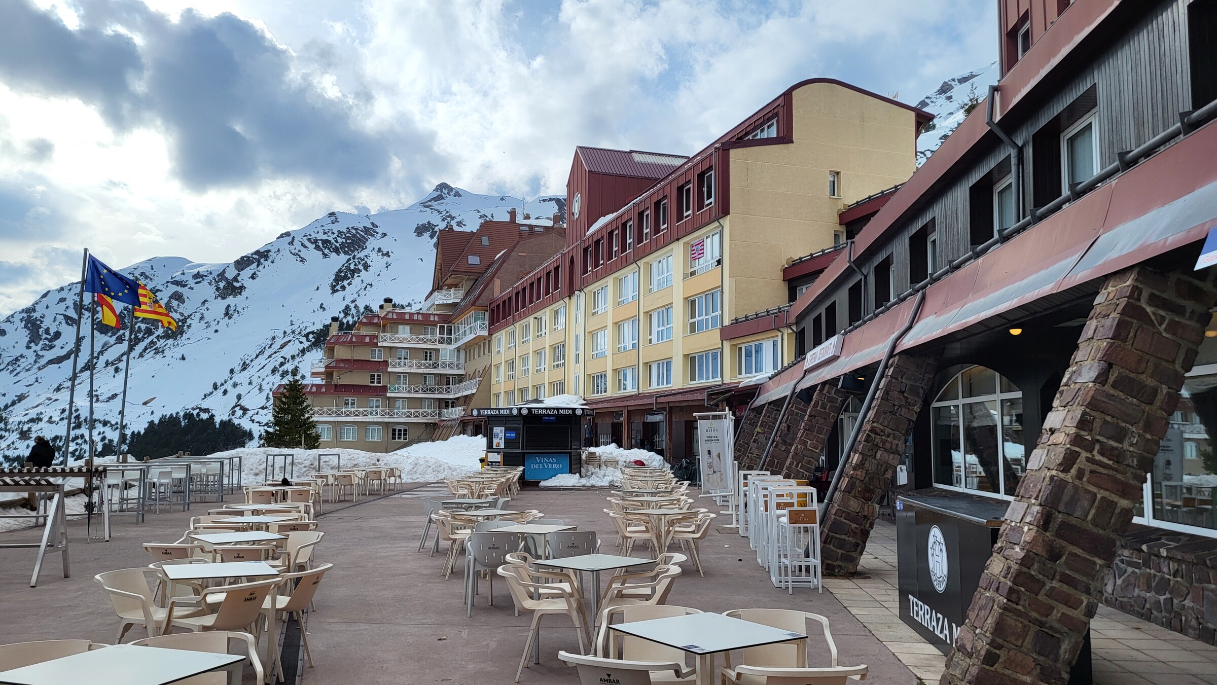 > Anschließend noch ein Spaziergang durch den Ort von Candanchú, an der kuriosen Talstation der 3SB Tobazo vorbei, die mt zwei Zwischenstationen verschiedene Aufgaben erfüllt