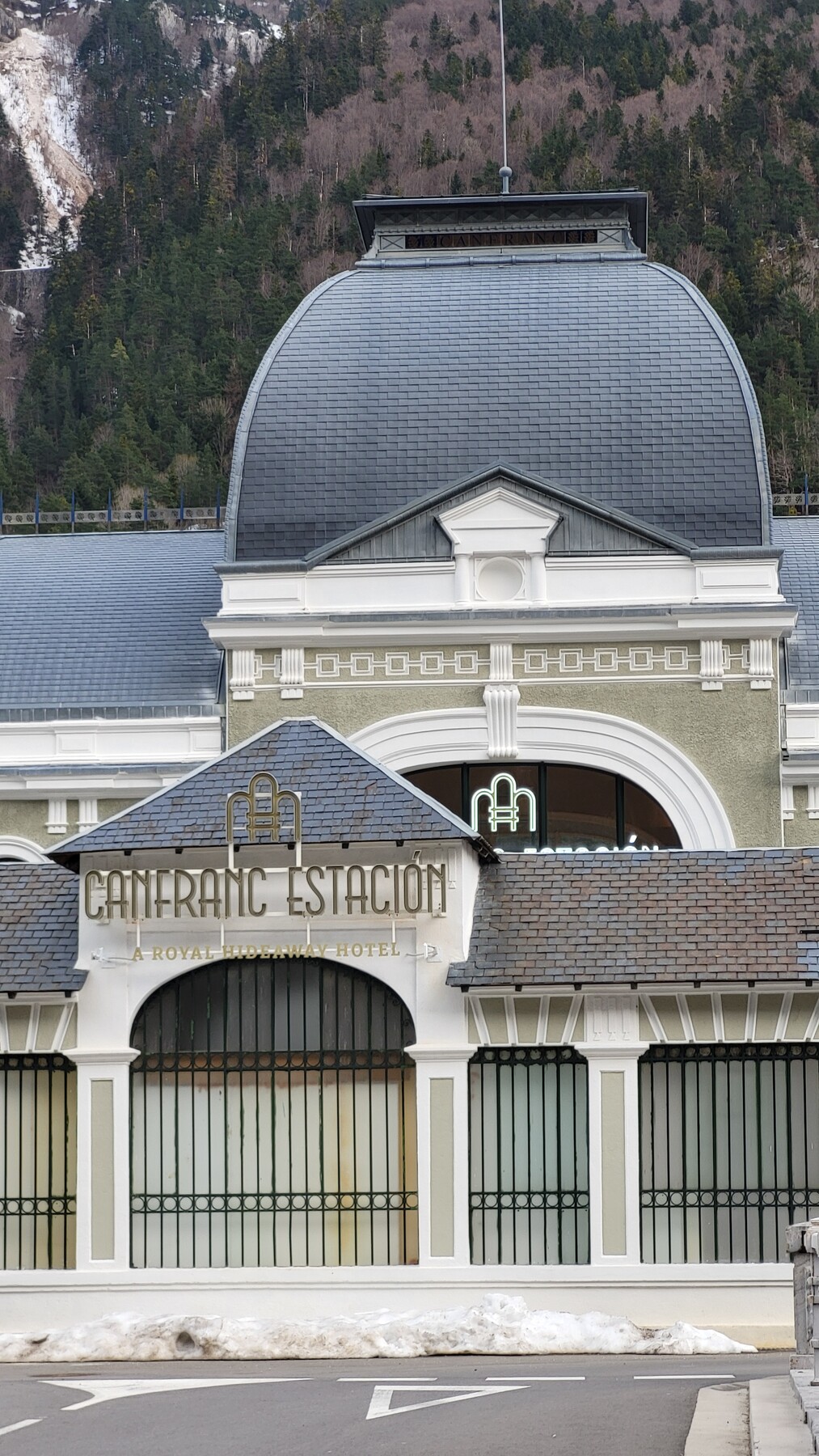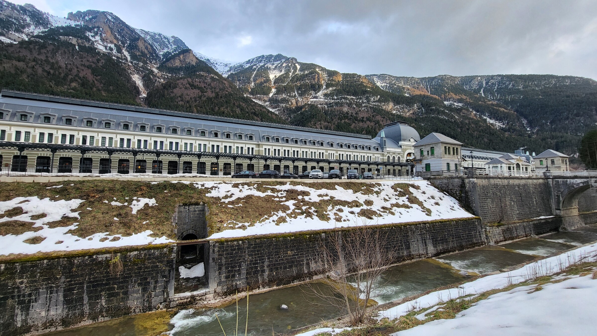 > Der berühmte, ewig lange Bahnhof von Canfranc, vielleicht ja irgendwann doch mal wieder stärker im Bahnverkehr genutzt?