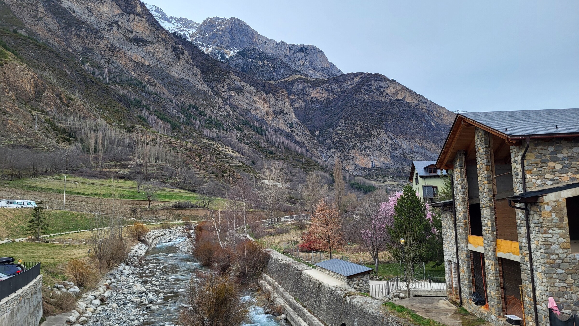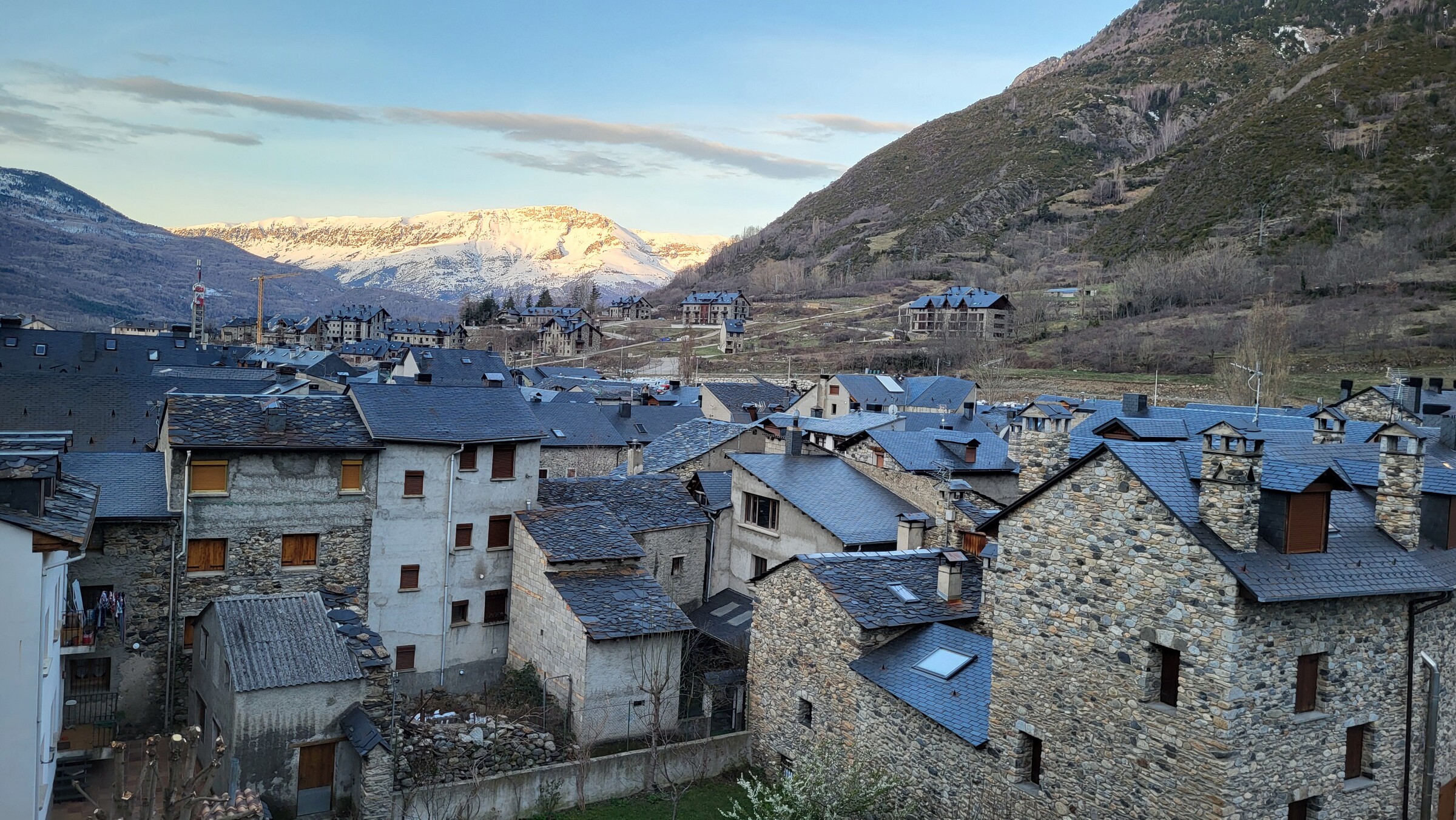 > Morgendlicher Blick aus meinem Hotelzimmer in Benasque. Der Ort, umgeben von vielen 3.000ern, ist so etwas wie das spanische Chamonix