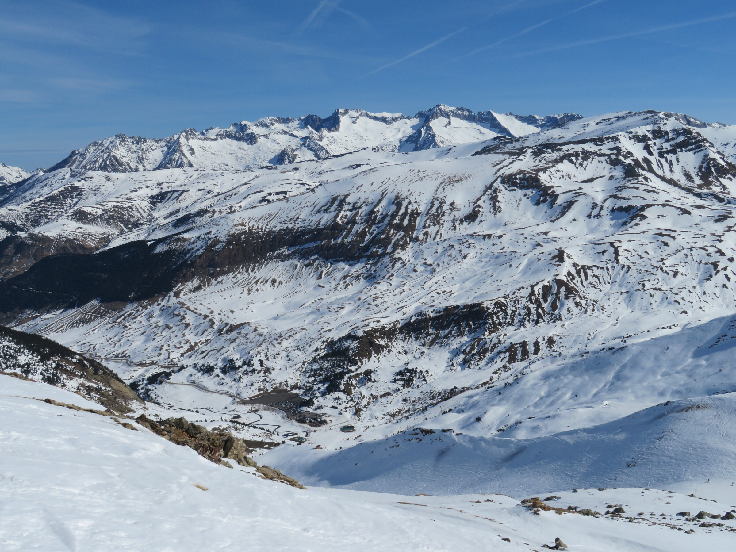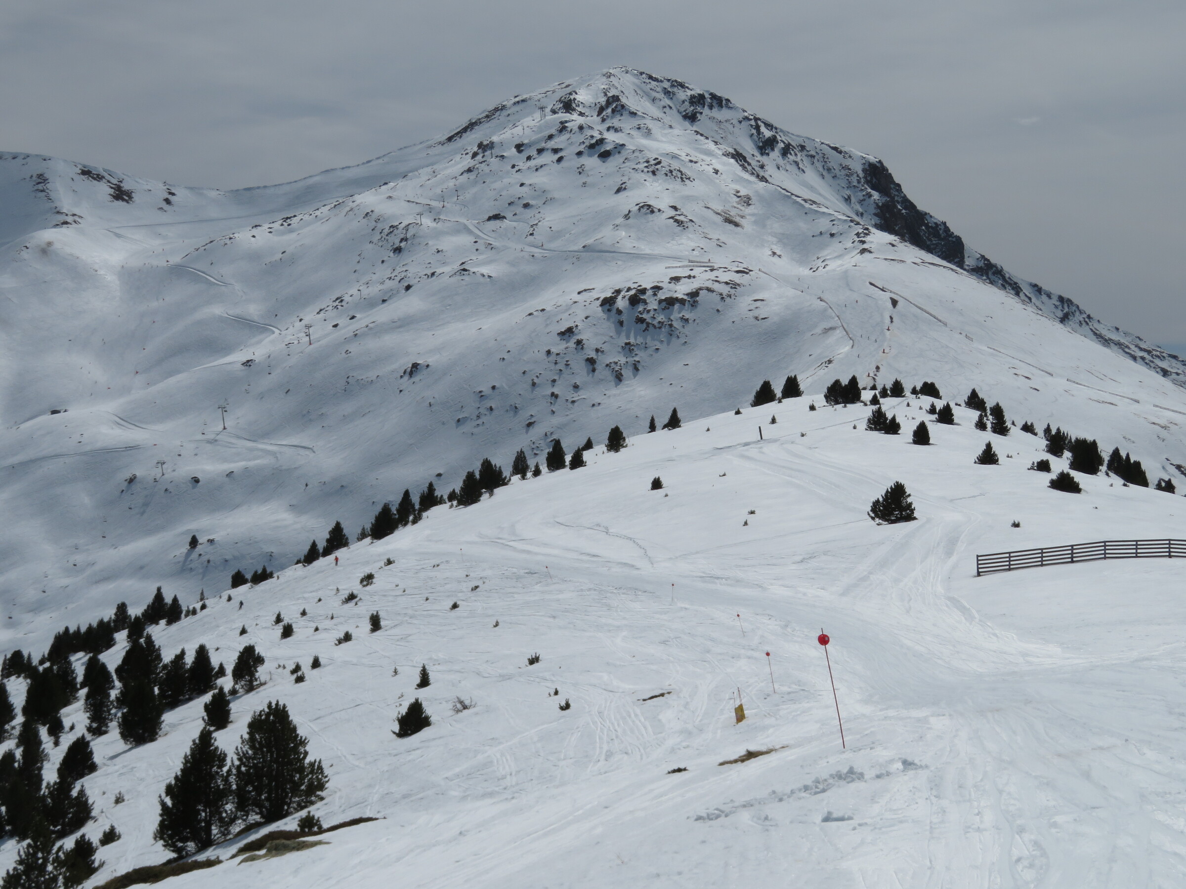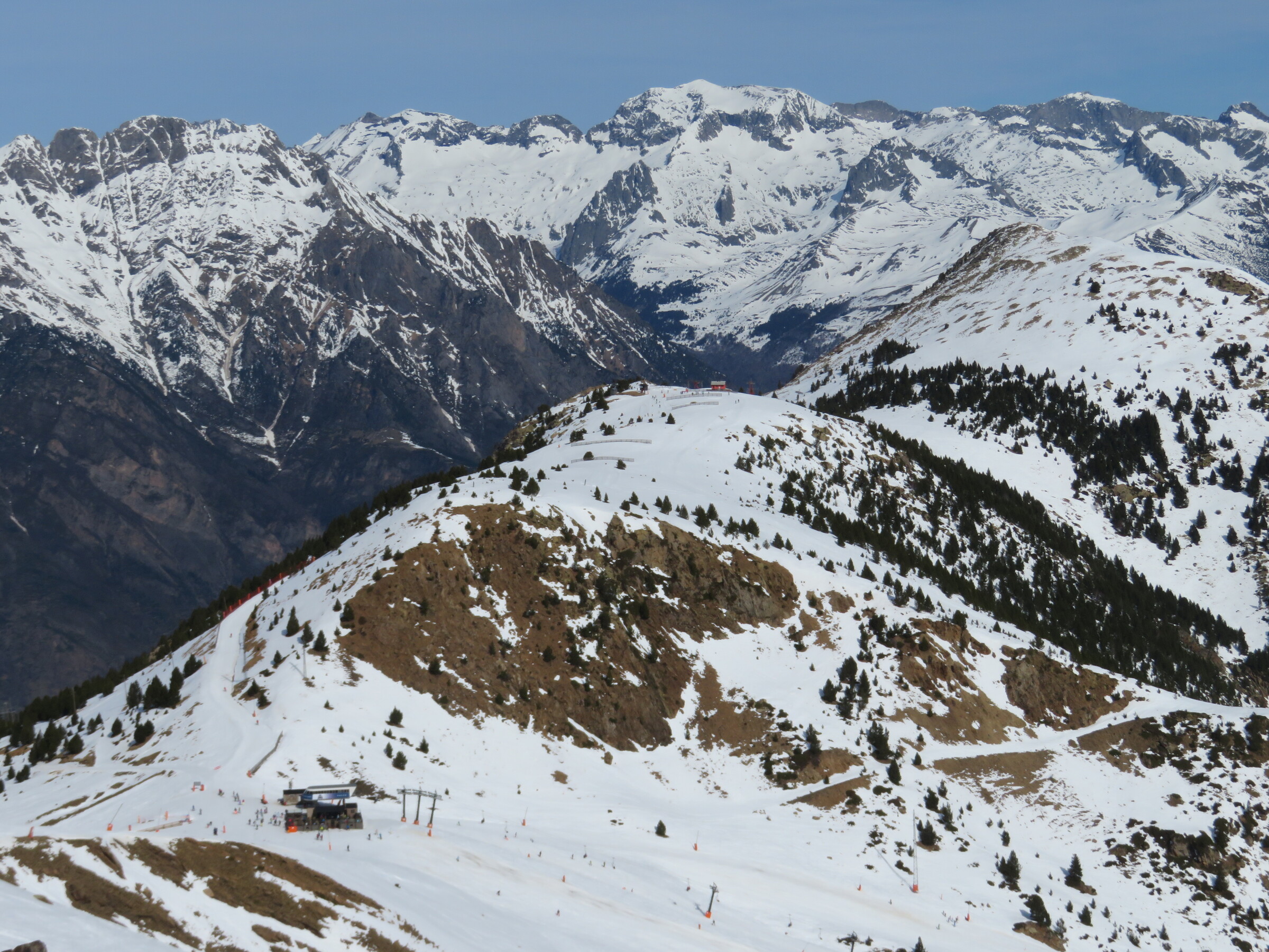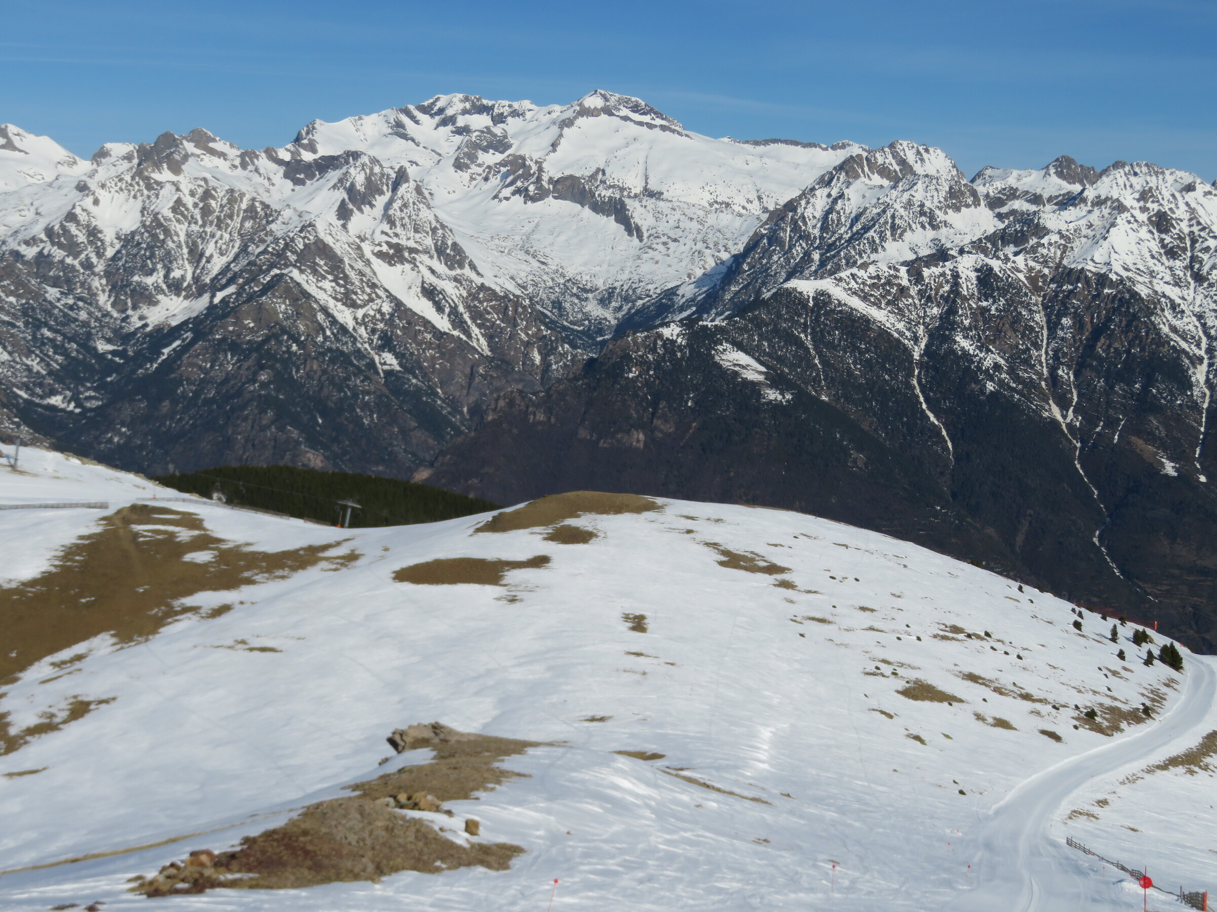Eine der Überraschungen auf dieser Reise: Erstaunlich abwechslungsreich und weitläufiger als erwartet. Dazu dank der hohen Nordhänge der letzte Tag mit gutem, pulvrigen Schnee (bevor Hitze und Saharasand immer stärker würden) und dank der vielen kuppelbaren Lifte auch einige Wiederholungen möglich. Der beste Pistentag meines Aufenthalts in Spanien!