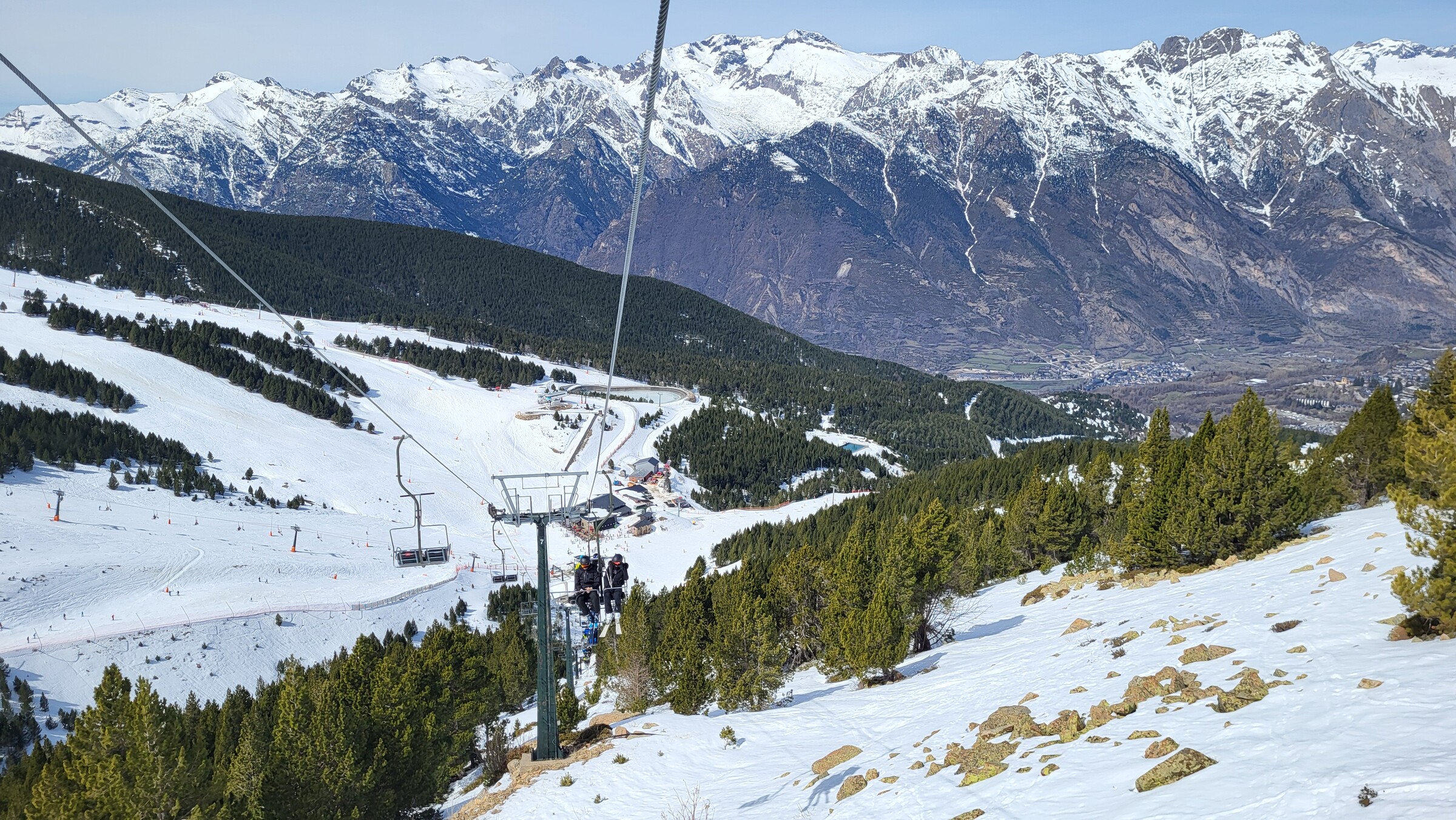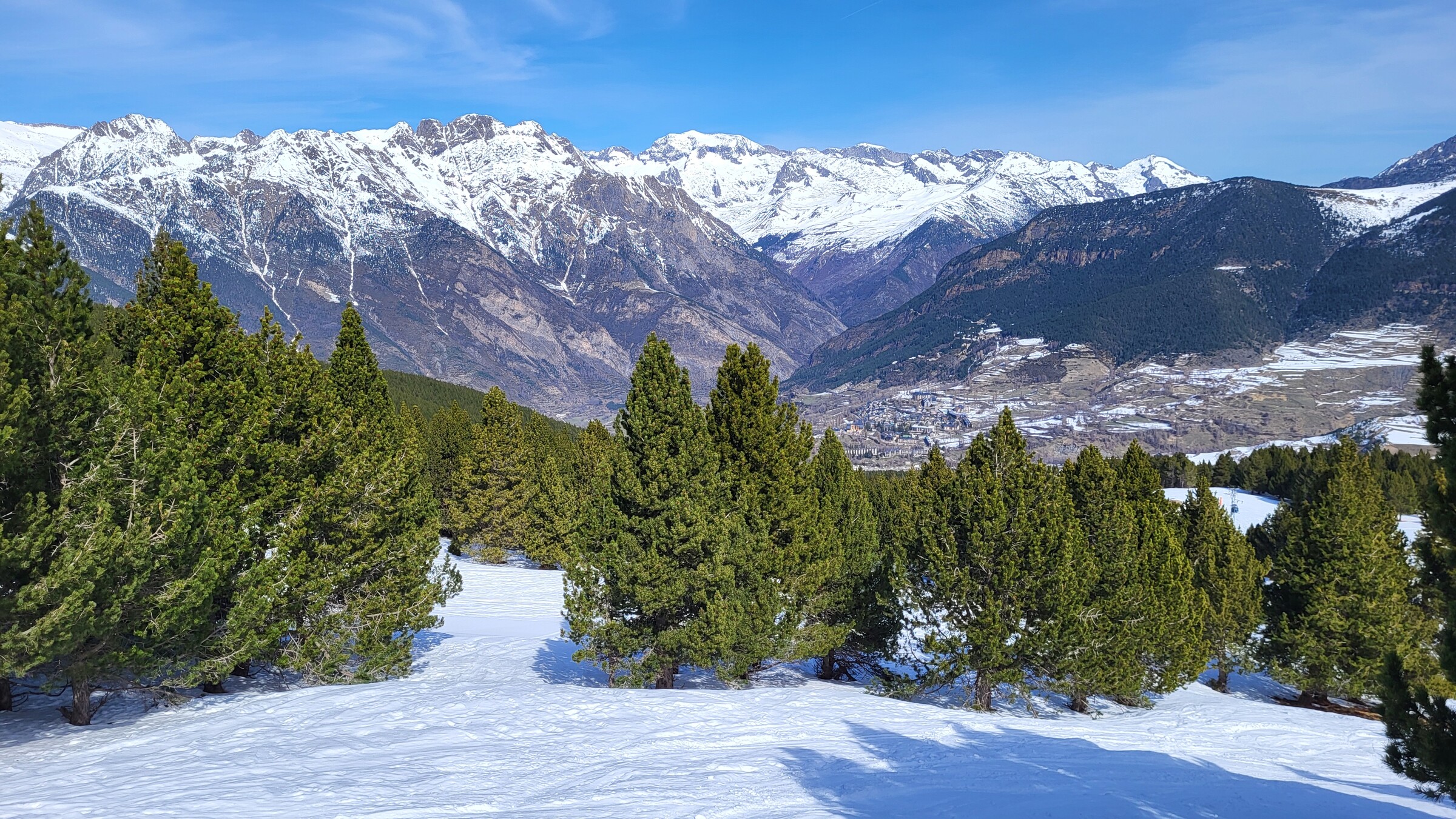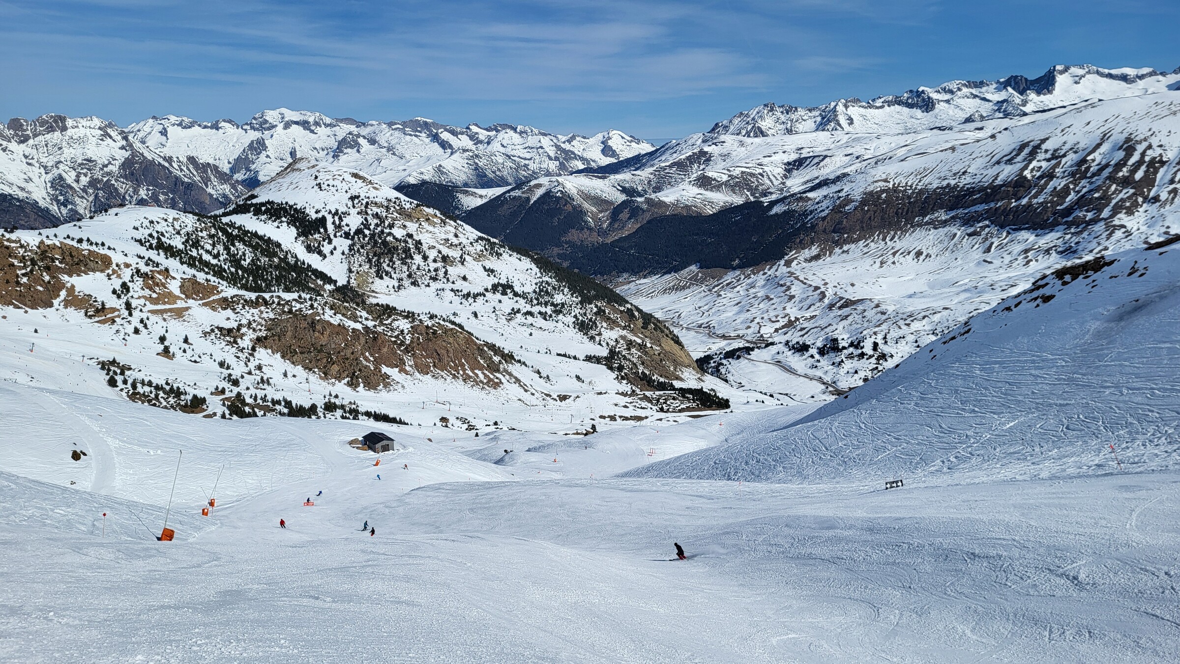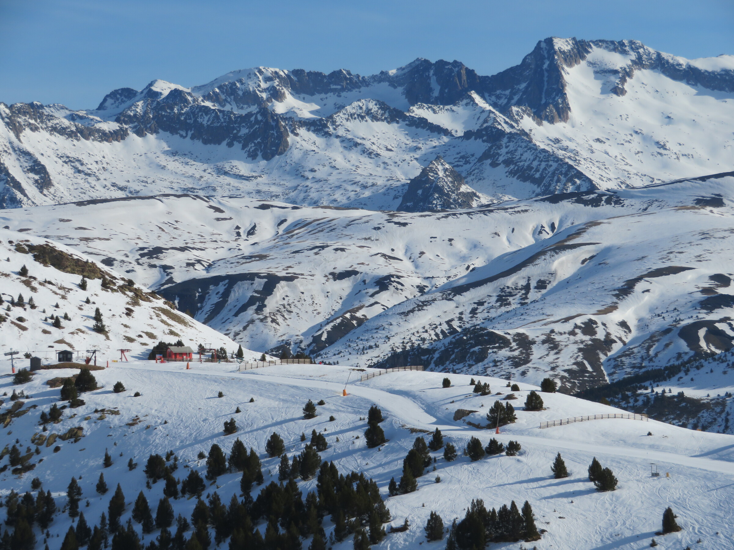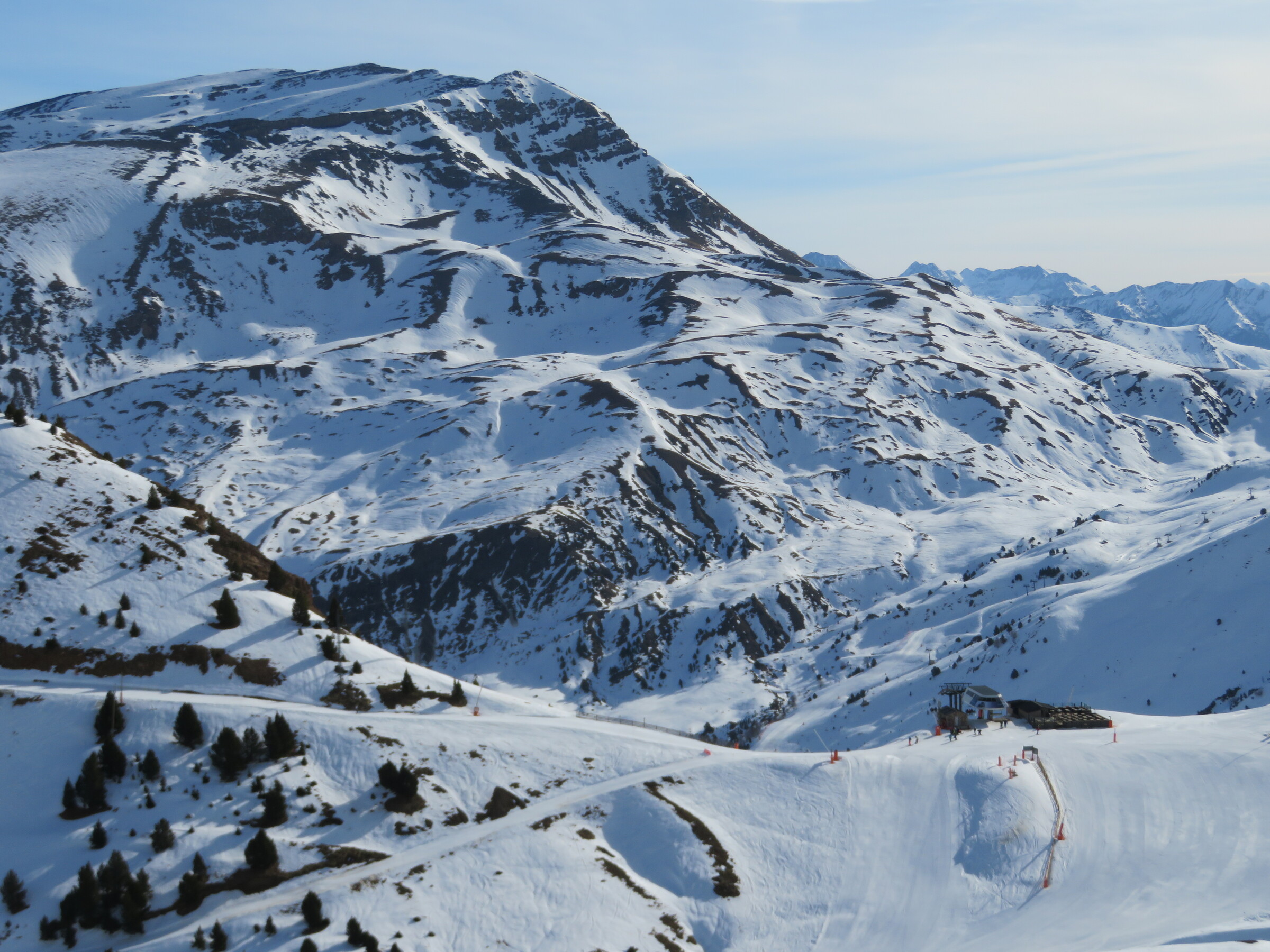 Eine der Überraschungen auf dieser Reise: Erstaunlich abwechslungsreich und weitläufiger als erwartet. Dazu dank der hohen Nordhänge der letzte Tag mit gutem, pulvrigen Schnee (bevor Hitze und Saharasand immer stärker würden) und dank der vielen kuppelbaren Lifte auch einige Wiederholungen möglich. Der beste Pistentag meines Aufenthalts in Spanien!