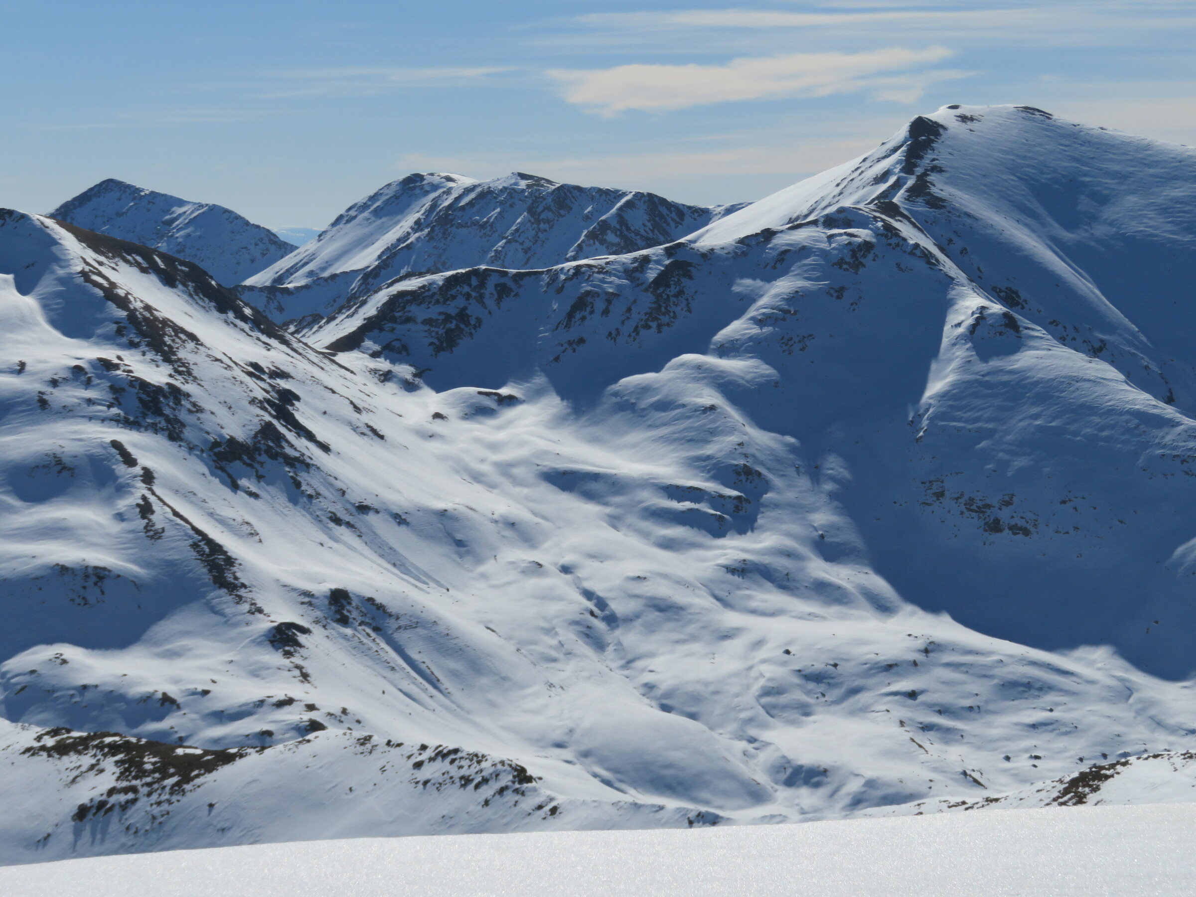 > SB Roies. Abseits der Pisten leider weniger Schnee als es aussieht und unangenehm hart angefroren