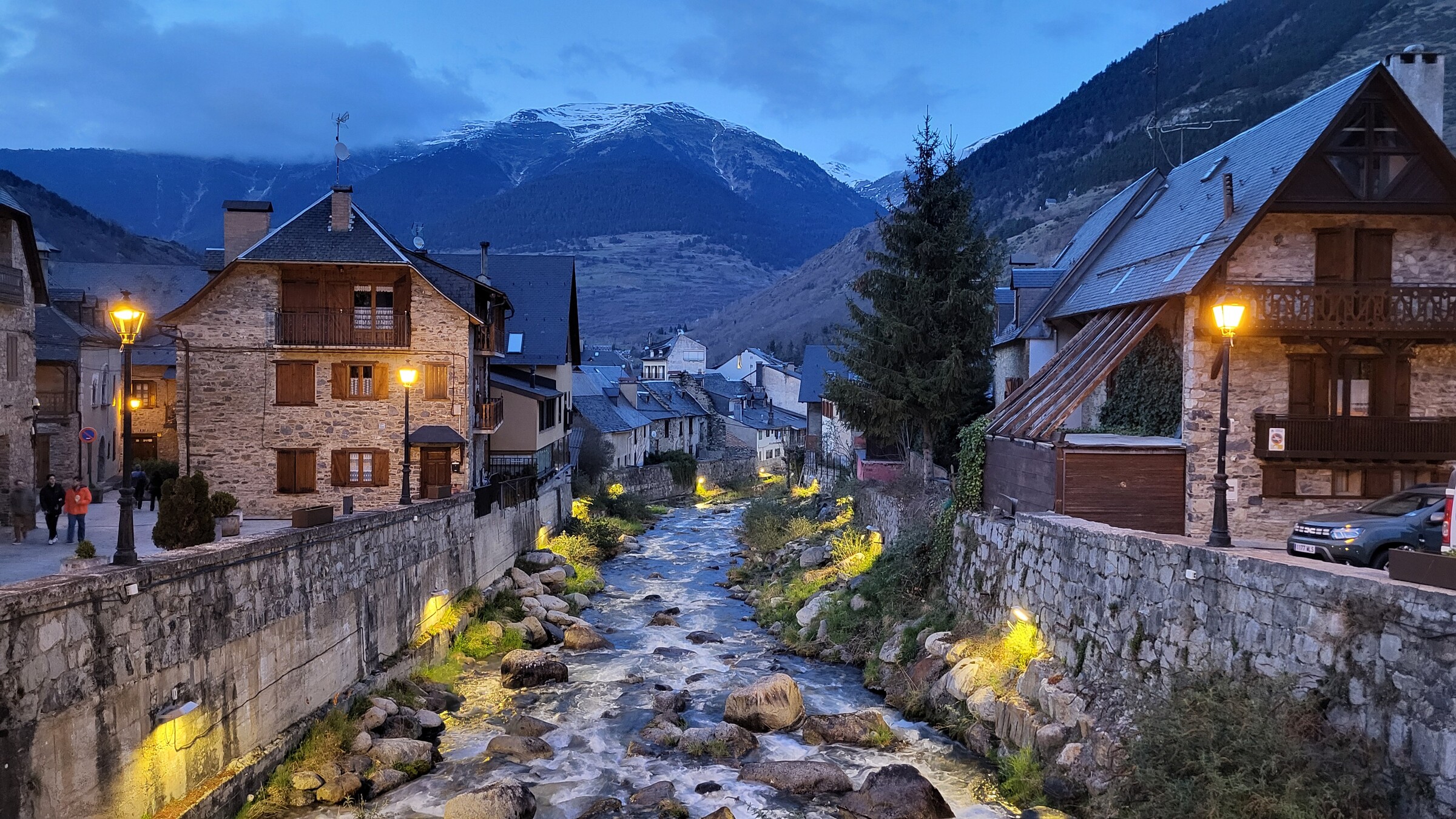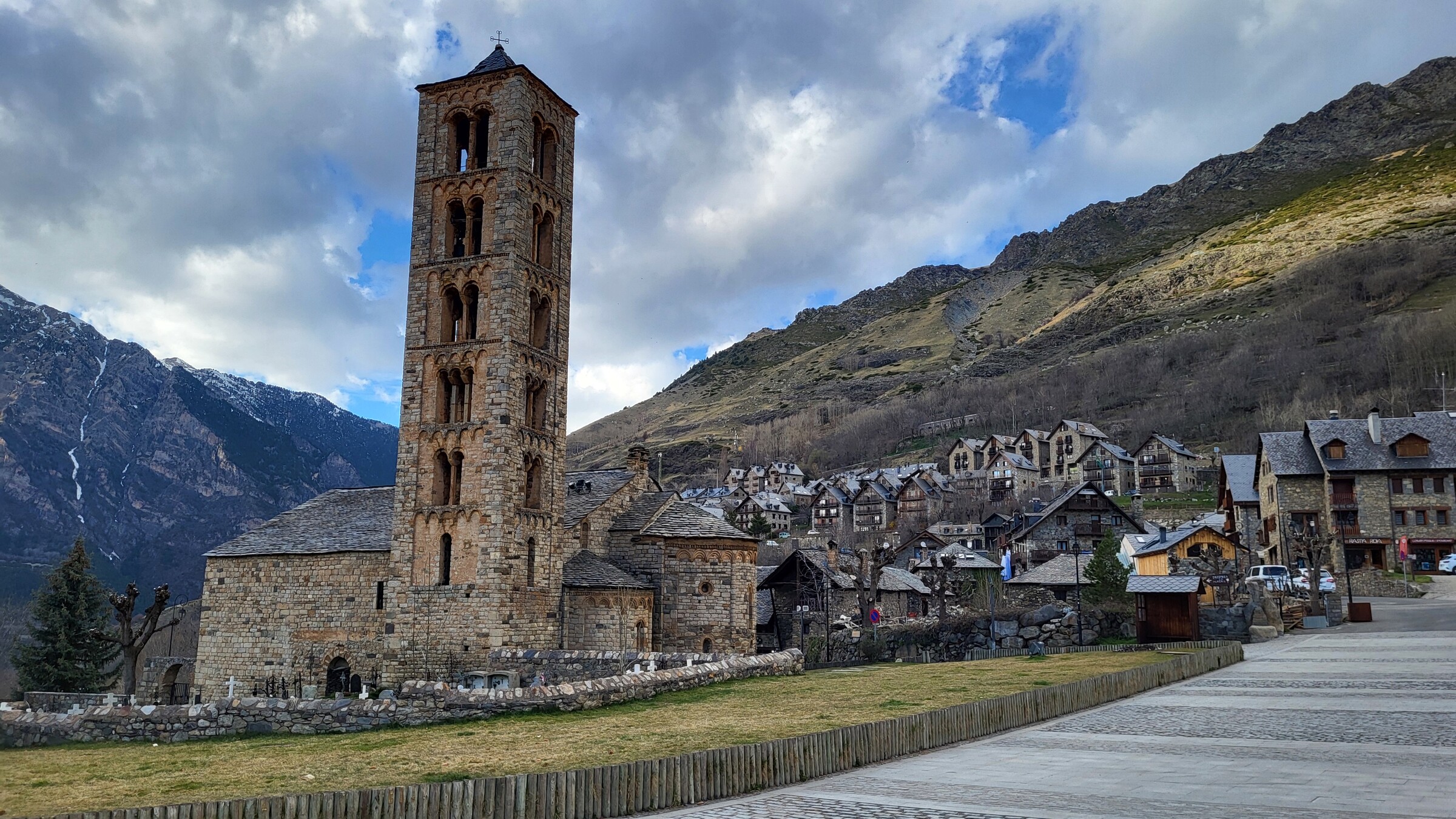 > Alte Ortschaft Taüll, hier und im benachbarten, künstlich angelegten Ort Pla de l’Ermita finden sich die Unterkünfte des Skigebiets