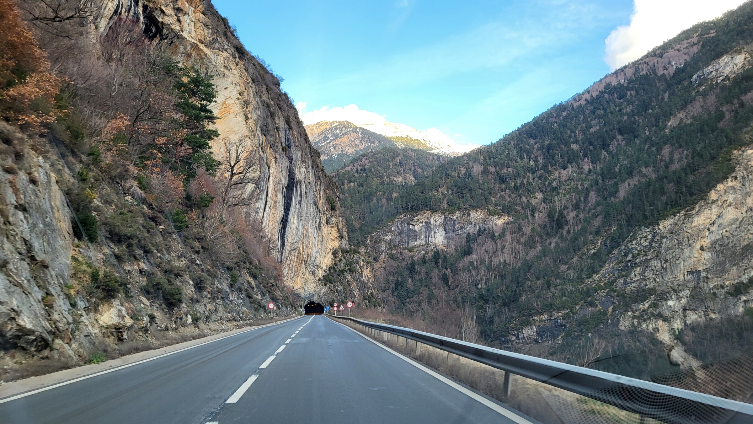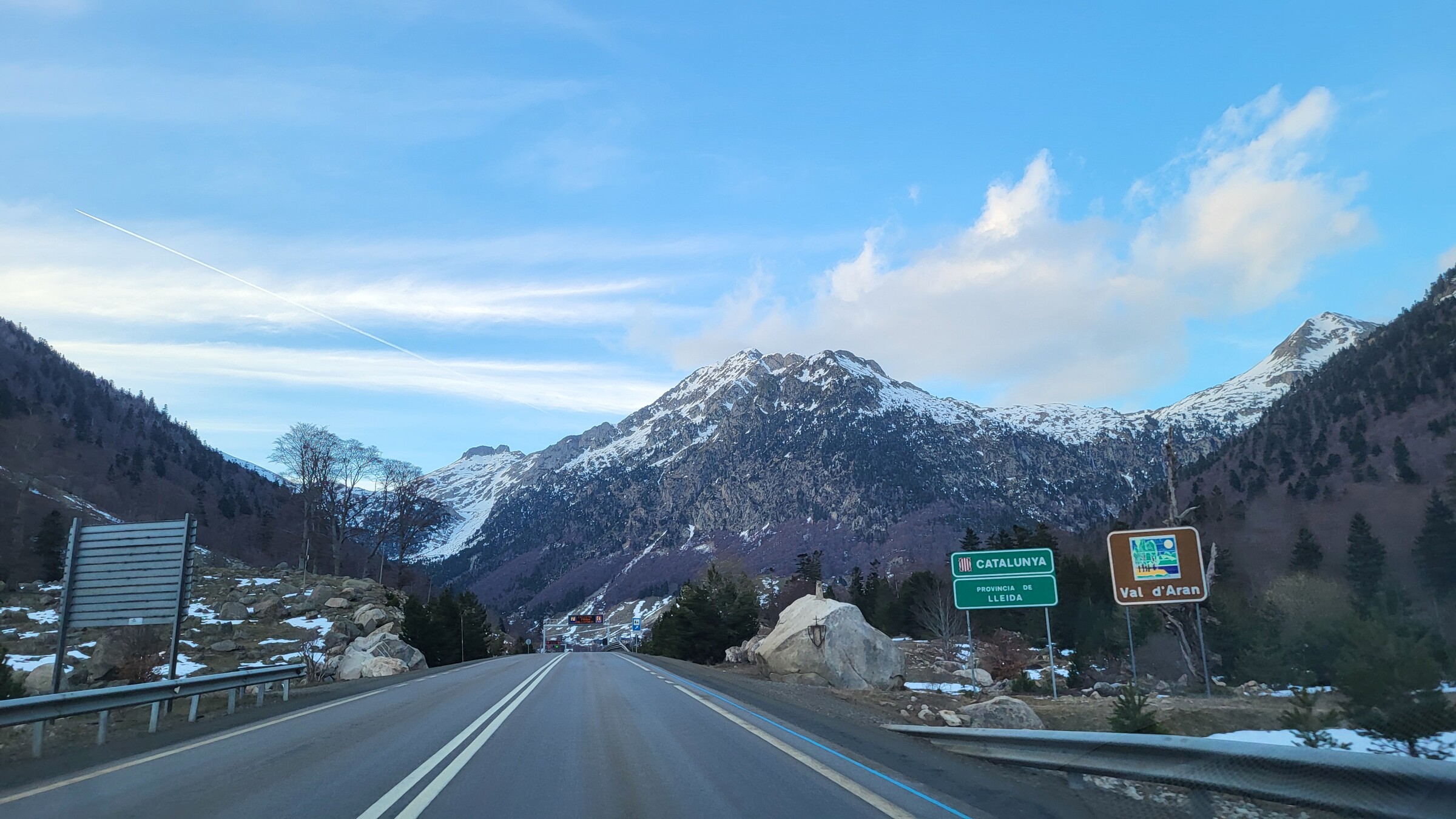 > Danach ging es auf der N-230, die erstmal wieder ein Stück durch Aragonien verläuft, immer weiter Richtung Norden und schließlich durch den langen, aber kostenlosen Túnel de Vielha zurück auf die Nordseite der Pyrenäen in das Vall d’Aran. Dieses Tal liegt zwar nördlich des Hauptkamms, gehört aber dennoch zu Spanien.