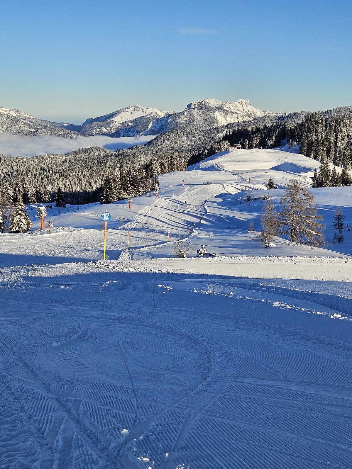 Piste an der Roßalmbahn. Ideale Piste für Kiner und Anfänger. Schaut zwar hier nicht so aus, ist aber eine der flachsten Pisten, die ich überhaupt kenne