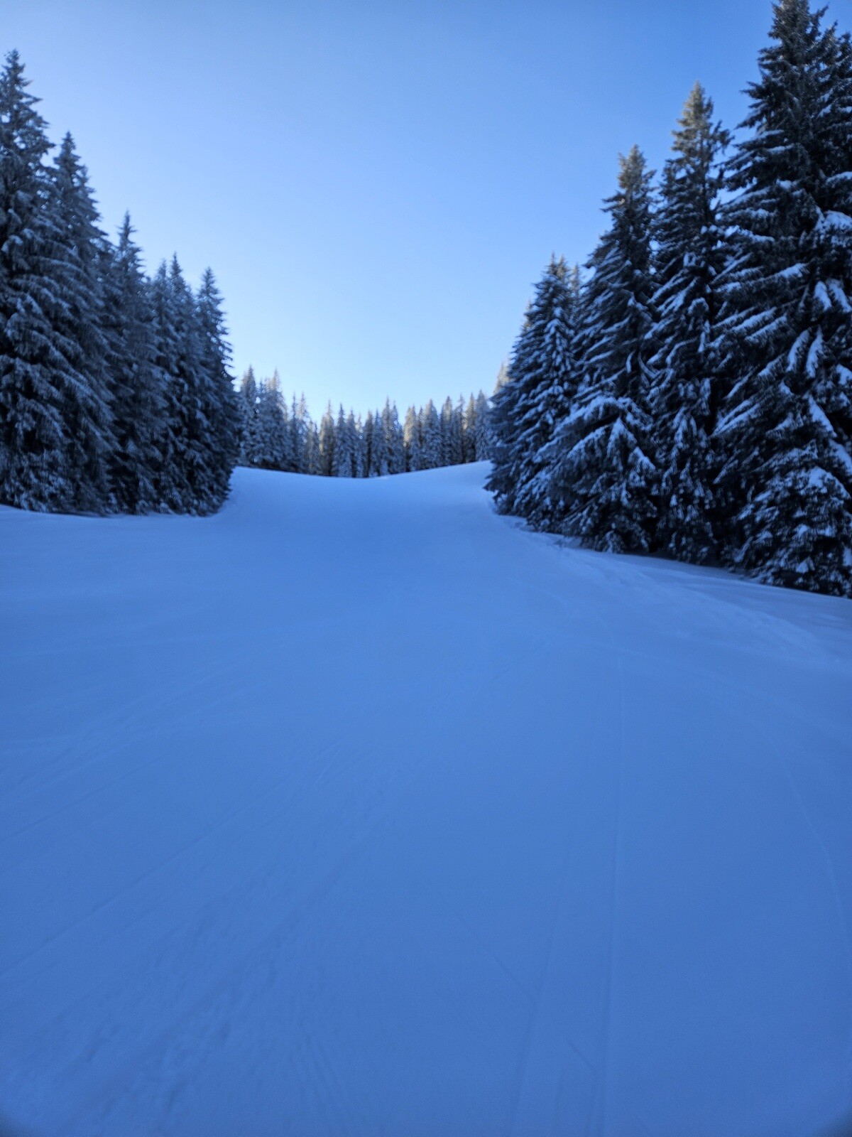 Fazit: der frühe Vogel fängt am ersten Weihnachtfeiertag den Wurm bzw. hat noch gute Pisten. So war das auch hier. In den ersten ein, zwei Stunden noch fluffig, weich, griffig. Danach kamen natürlich vermehrt glatte Stellen heraus. Nettes Gebiet für fast alle Ansprüche.