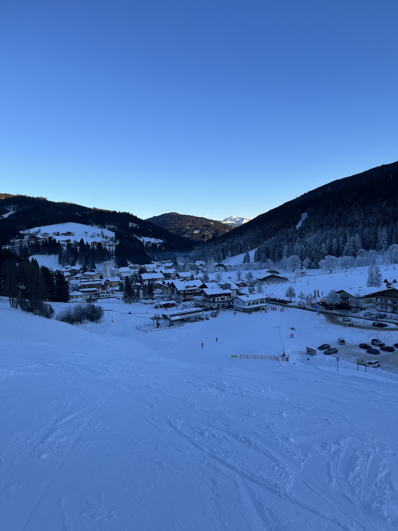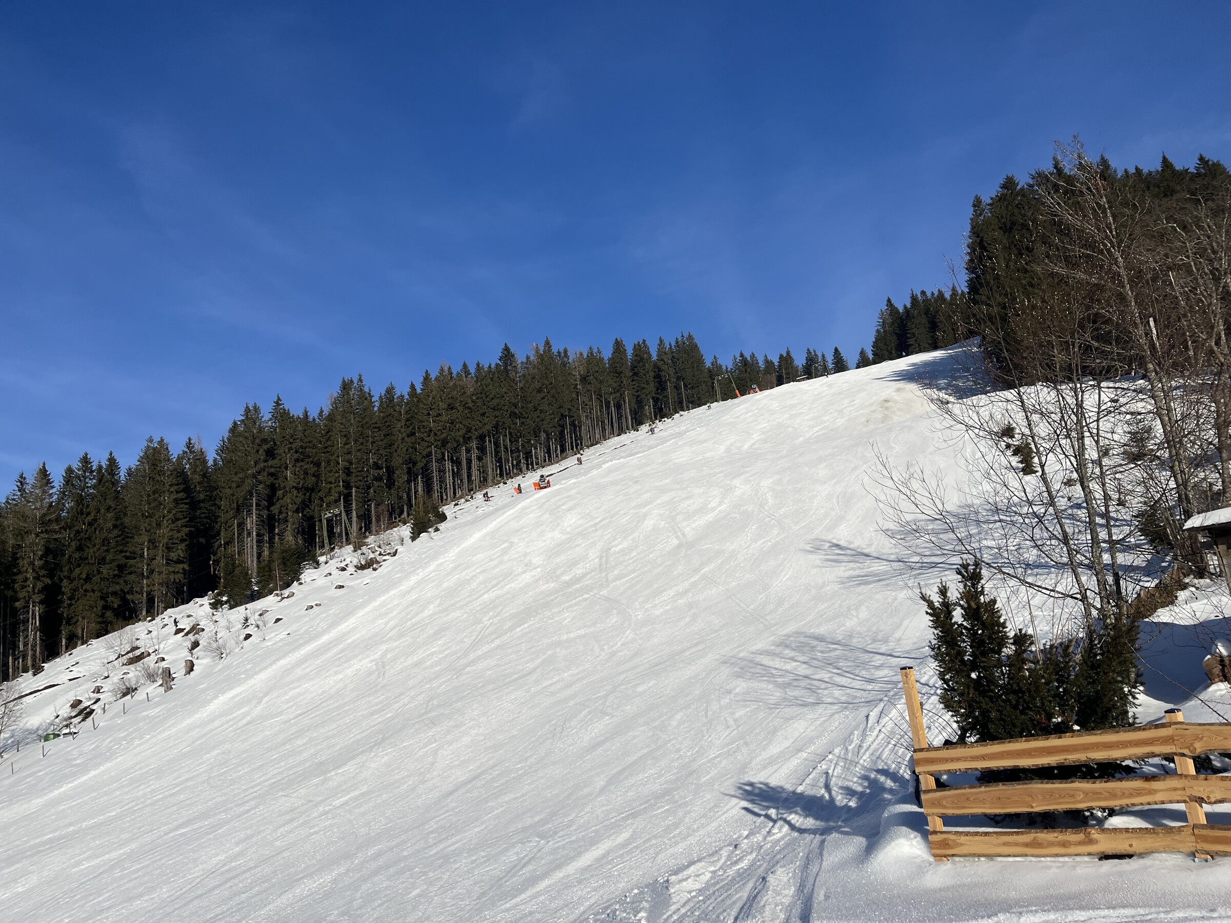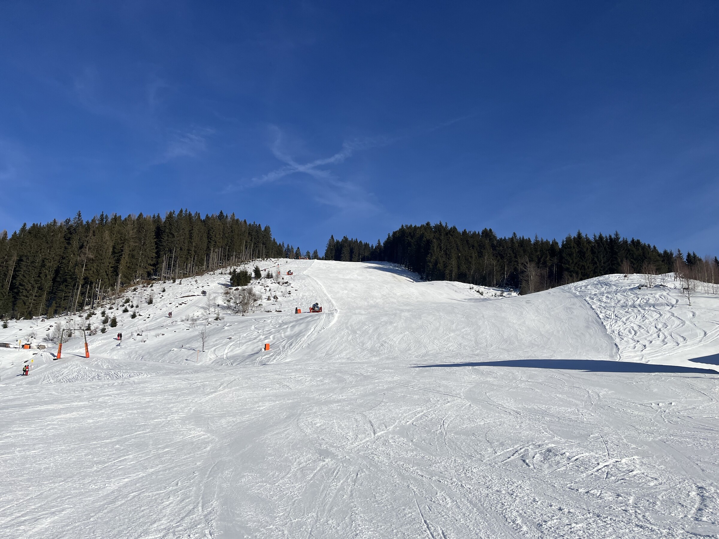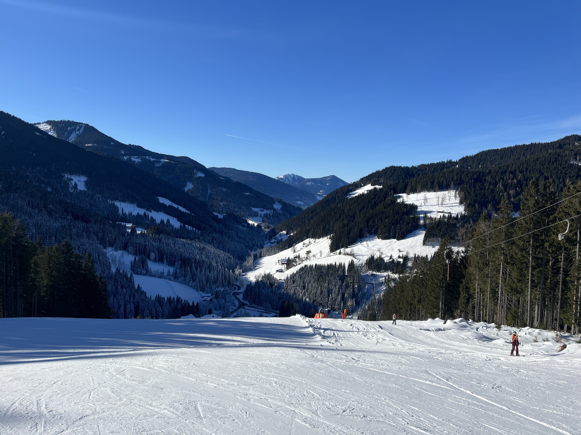 Hier noch einige Bilder von der Silvesterwoche aus Filzmoos. Geöffnet war alles bis auf die schwarze Piste und die untere rote Piste am Großberglift. Bis einschließlich Neujahr perfektes sonniges Wetter, danach dann bewölkt und etwas Neuschnee. An dem Sonntag vor Silvester war es sehr voll, an den anderen Tagen war es vom Andrang her leer bis mäßig gefüllt, je nachdem wo man gefahren ist. Der beste Tag war wahrscheinlich Neujahr, wenig Andrang und perfektes Wetter und perfekte Pisten.