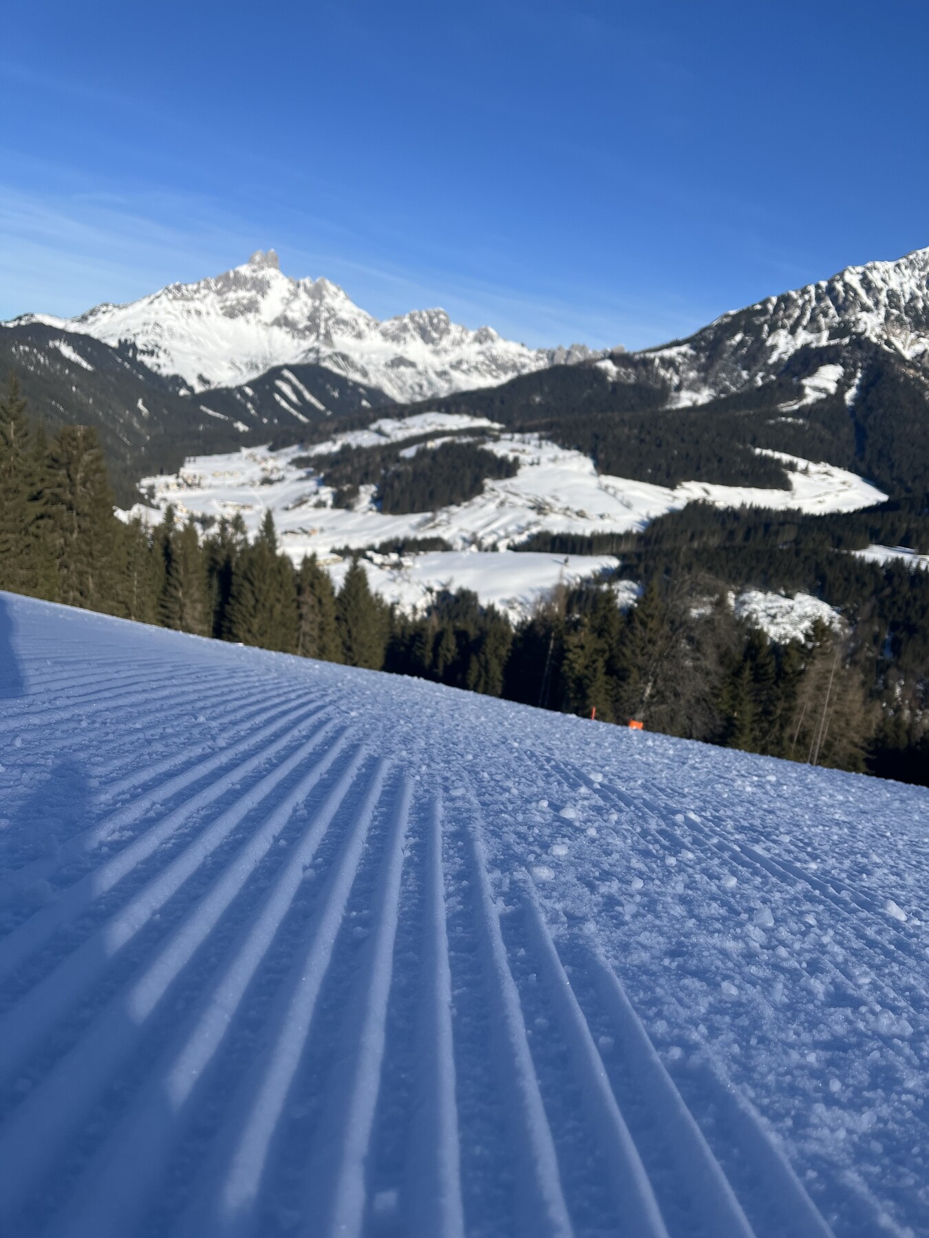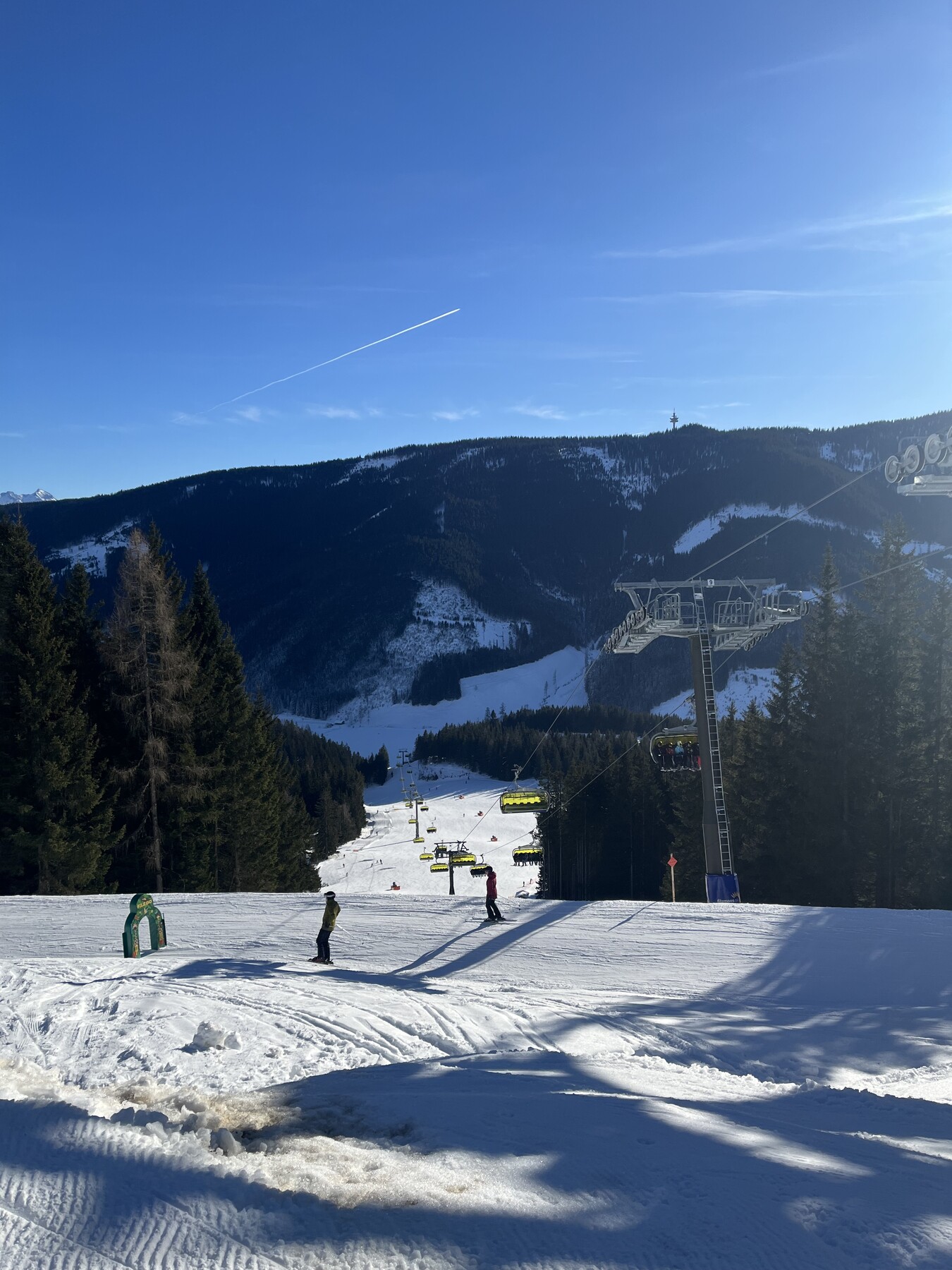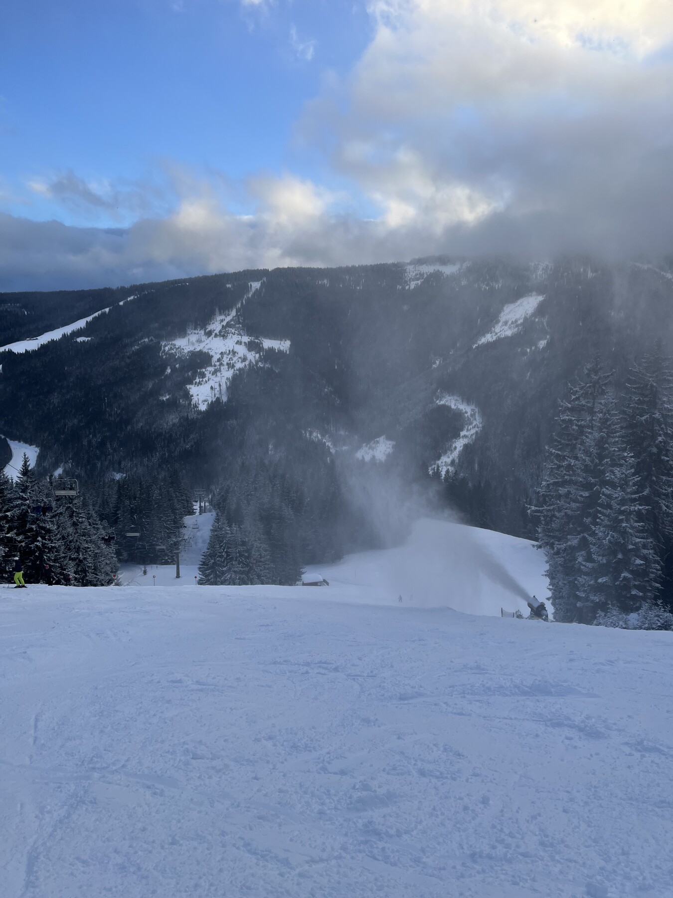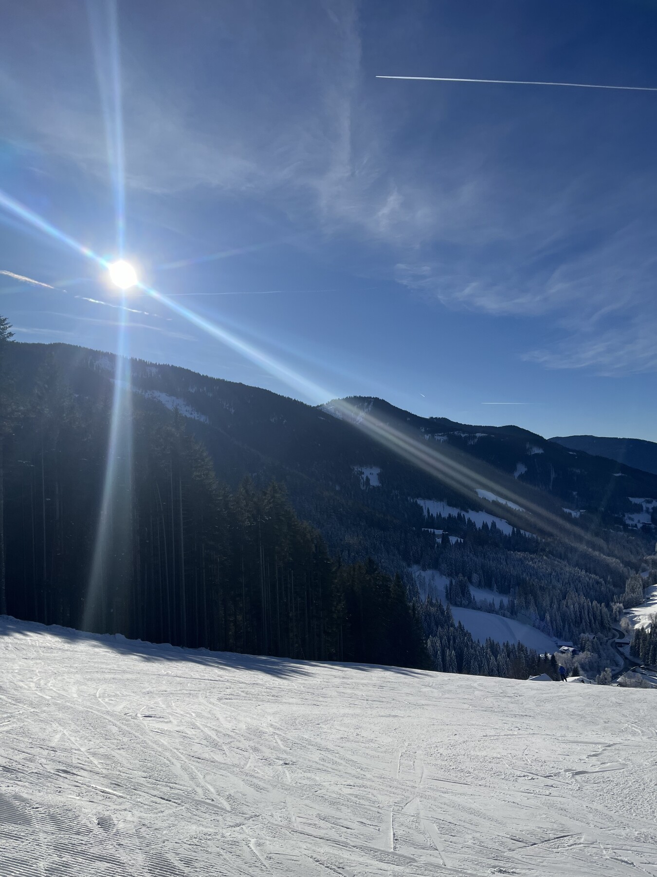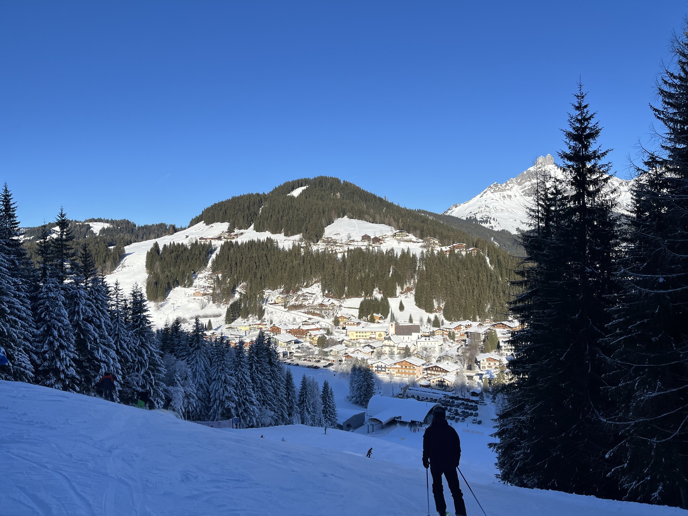 Hier noch einige Bilder von der Silvesterwoche aus Filzmoos. Geöffnet war alles bis auf die schwarze Piste und die untere rote Piste am Großberglift. Bis einschließlich Neujahr perfektes sonniges Wetter, danach dann bewölkt und etwas Neuschnee. An dem Sonntag vor Silvester war es sehr voll, an den anderen Tagen war es vom Andrang her leer bis mäßig gefüllt, je nachdem wo man gefahren ist. Der beste Tag war wahrscheinlich Neujahr, wenig Andrang und perfektes Wetter und perfekte Pisten.