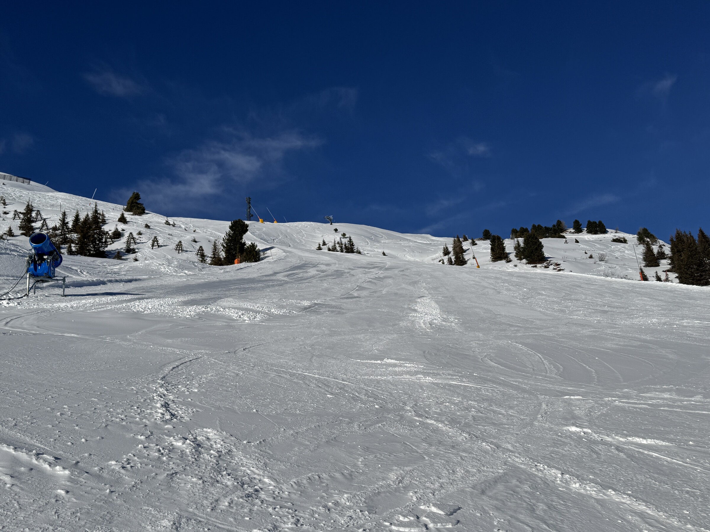Alle Pisten oberhalb der Mittelstation sind unfassbar gut zu fahren. Auf der Talabfahrt leider etwas stumpfer Maschinenschnee.