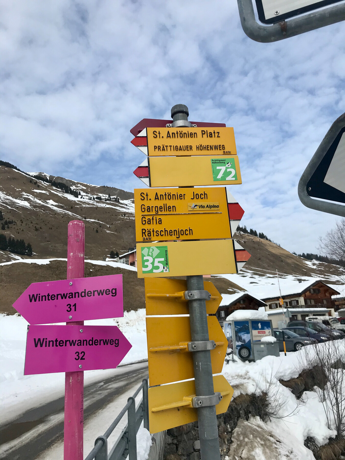 Ich hatte vom 19. bis 21.1. ein Einzelzimmer in dem kleinen Hotel Rhätia in St. Antönien ergattert. Am Abend des 21., also Dienstag, muss ich zu einer Fortbildung gemeinsam mit drei Freunden aus der Heimat in Lenzerheide eintreffen.