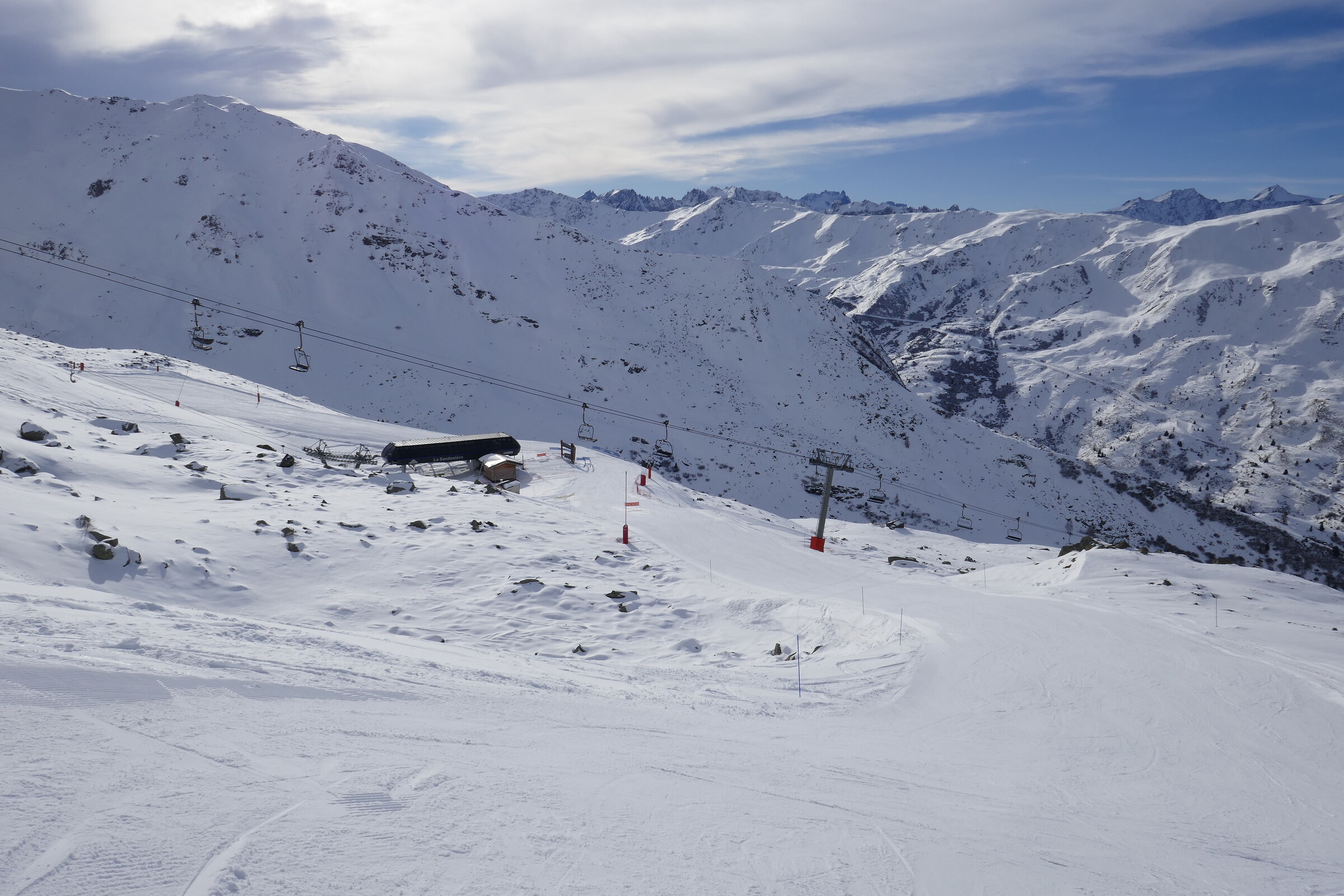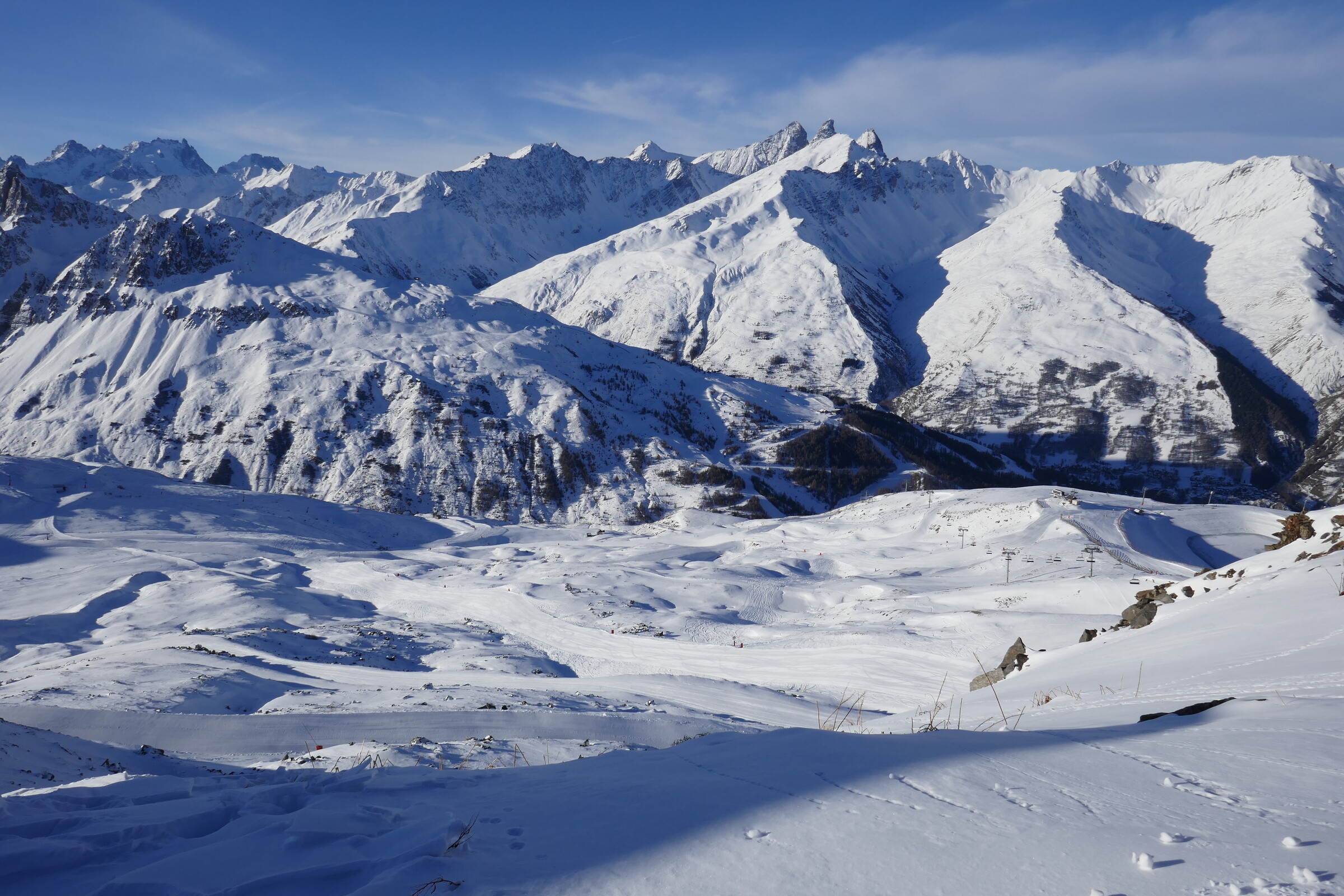 Eigentlich wollte ich schon seit vielen Jahren einmal das Skigebiet Valmeinier / Valloire besuchen. Das Gebiet hatte mich immer sehr auf dem Pistenplan durch seine Layout angesprochen, das sich über 2 Täler und 3 Bergrücken hinzieht. Zudem war das Skigebiet das Gebiet mit den meisten Korbliften (5) überhaupt und hatte auch sonst interessante Anlagen zu bieten. Mittlerweile sind die Lifte fast alle modernisiert und das Skigebiet wurde in Valmeinier sogar vor einigen Jahren noch um eine 6KSB Richtung Col de Marches erweitert, die 2 tolle neue Pisten in großer Höhe bietet.