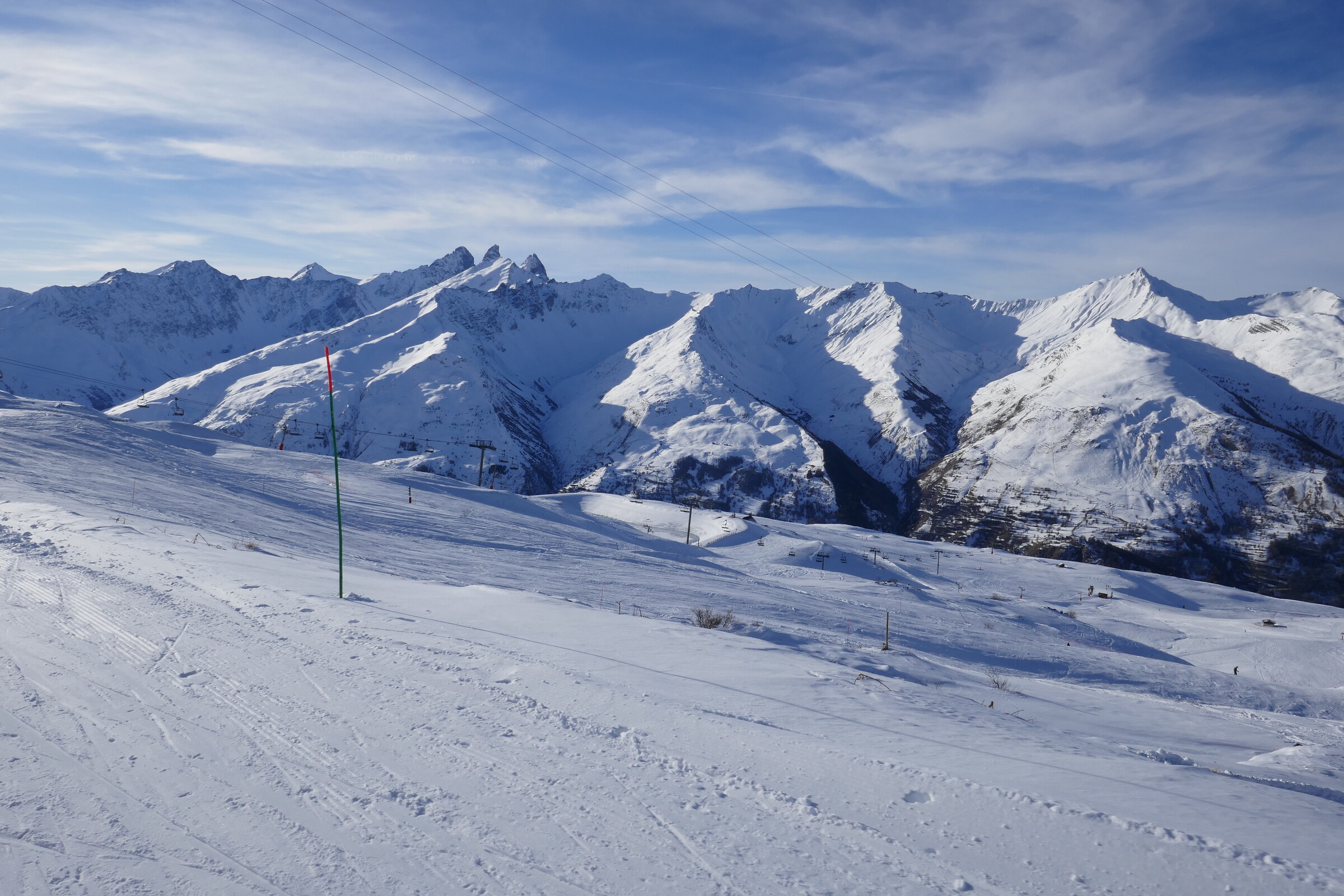 Dazwischen konnte man es aber gut krachen lassen. Ich kenne kaum ein Skigebiet, dass so viele perfekte Pisten zum schnell fahren bietet wie Valloire/Valmeinier.