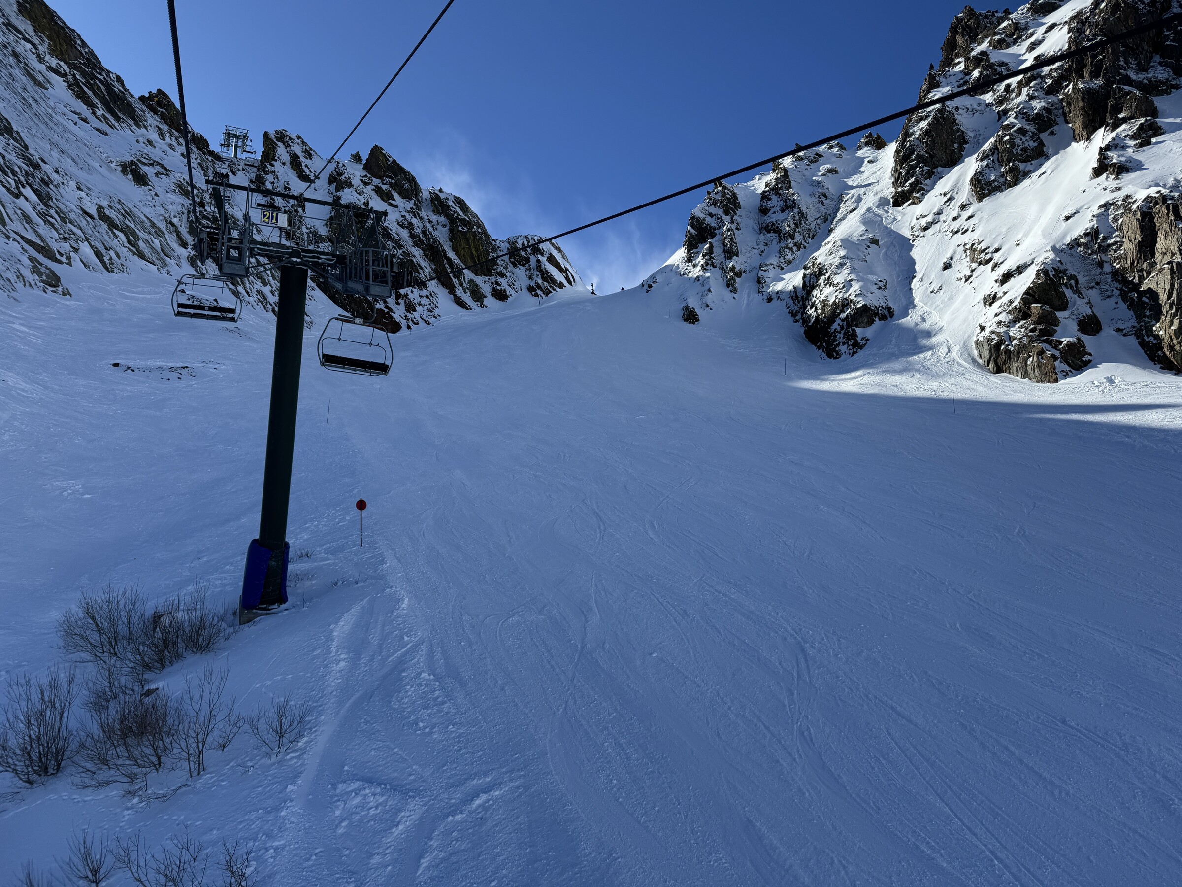 Geniale Abfahrt durch die Felsen an der 4 KSB. Super griffiger Schnee, meine Lieblingspiste für den Tag.