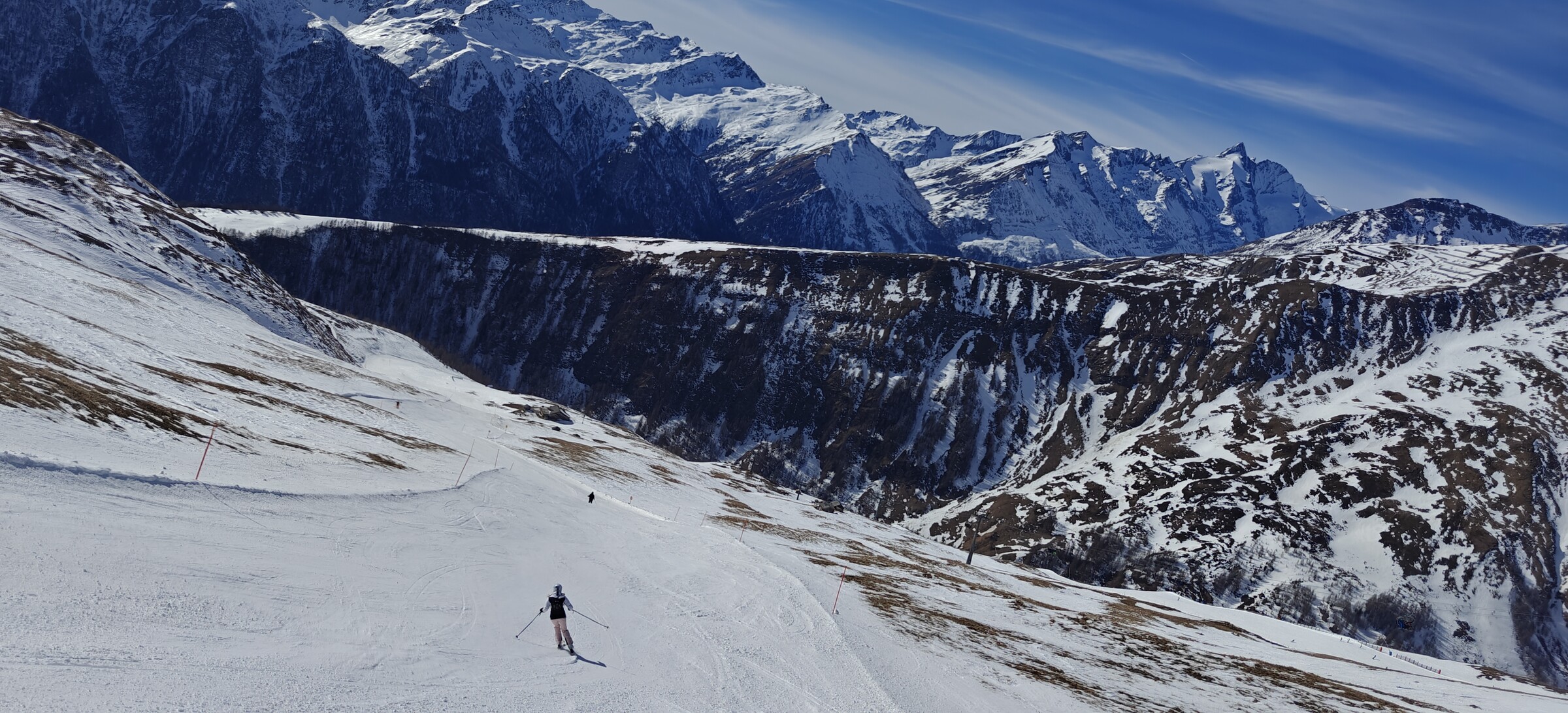 Der Schneemangel ist leider allgegenwärtig, die wenigen beschneiten Pisten gingen gut, aber viele nicht beschneite Pisten waren speziell nach dem warmen Samstag am Sonntag dann schon kurz vor knapp.