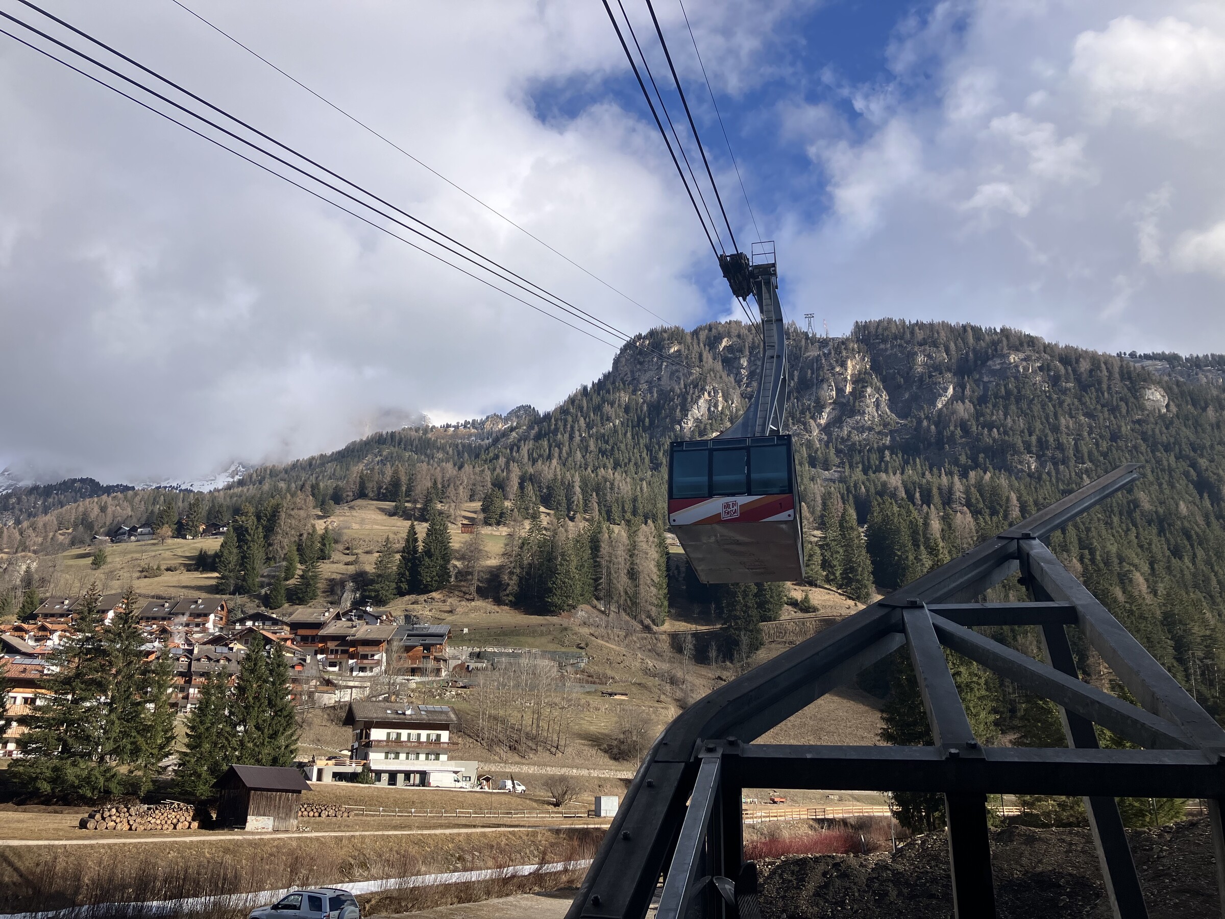 Der Tag beginnt, wie so oft, gleich mal mit der Fast-1000-HM-Fahrt zum Col Rodella. Leider habe ich die allererste Fahrt (fuhr heute schon so um 08:27) knapp verpasst.