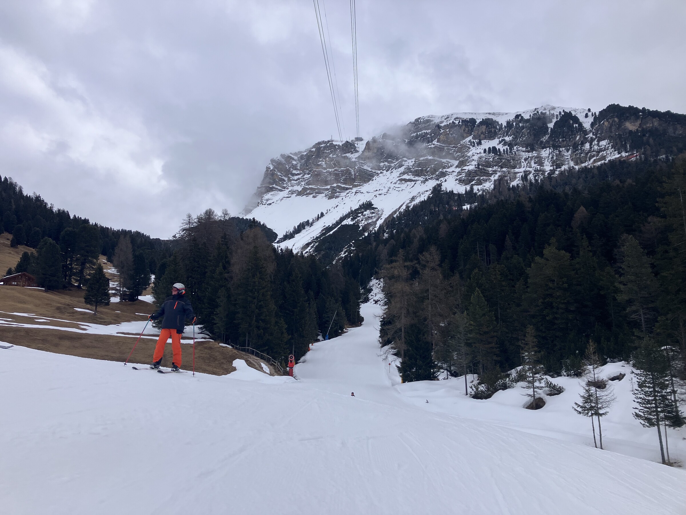 Wie lang man wohl durch St. Ulrich braucht? Ich plane konservativ und verschätze mich. Man braucht höchstens 10 min vom Pistenende bis zum Einstieg in die 2S.
