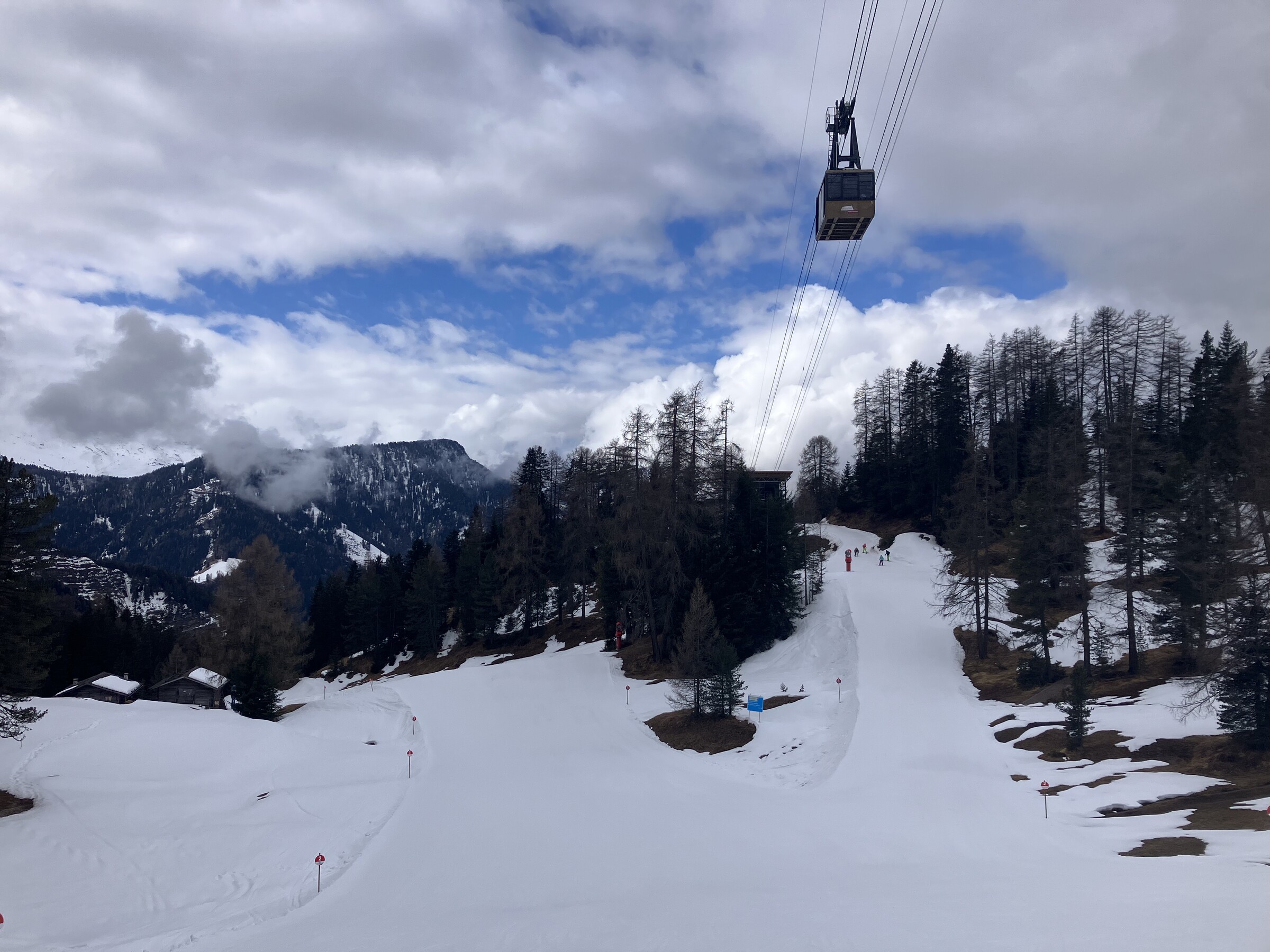 Die Runde in der anderen Richtung (Uhrzeigersinn) würde mich mal bei viel Naturschnee reizen, wenn eine inoffizielle Abfahrt nach Tiers möglich wäre. Vom Gelände her sollte das gut möglich sein. Dazu ist Ende März aber sicher die falsche Jahreszeit.