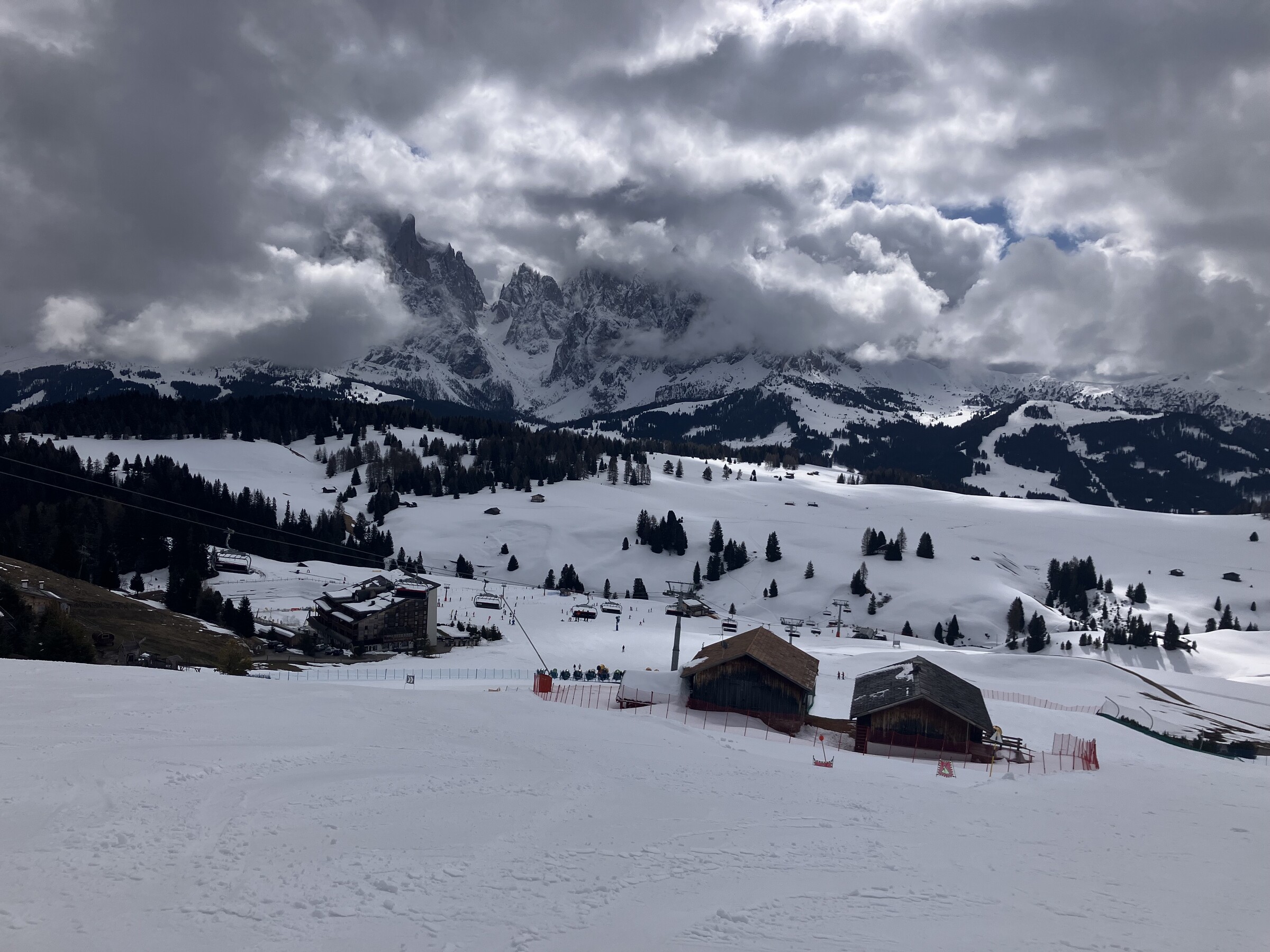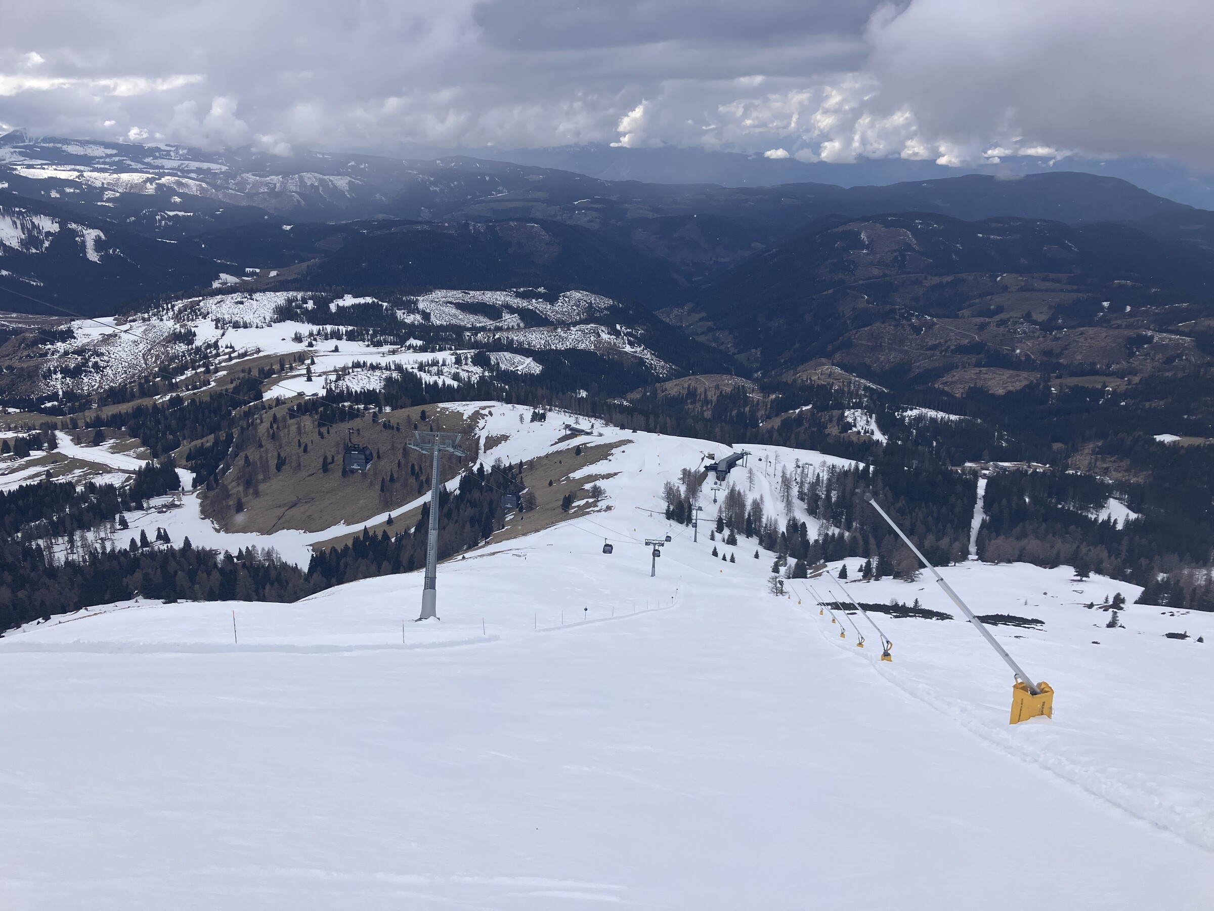Oben im Carezza Skigebiet ist entsprechend nix los. Carezza ist ja eh schon immer leerer als andere Gebiete, aber an einem Montag Ende März...