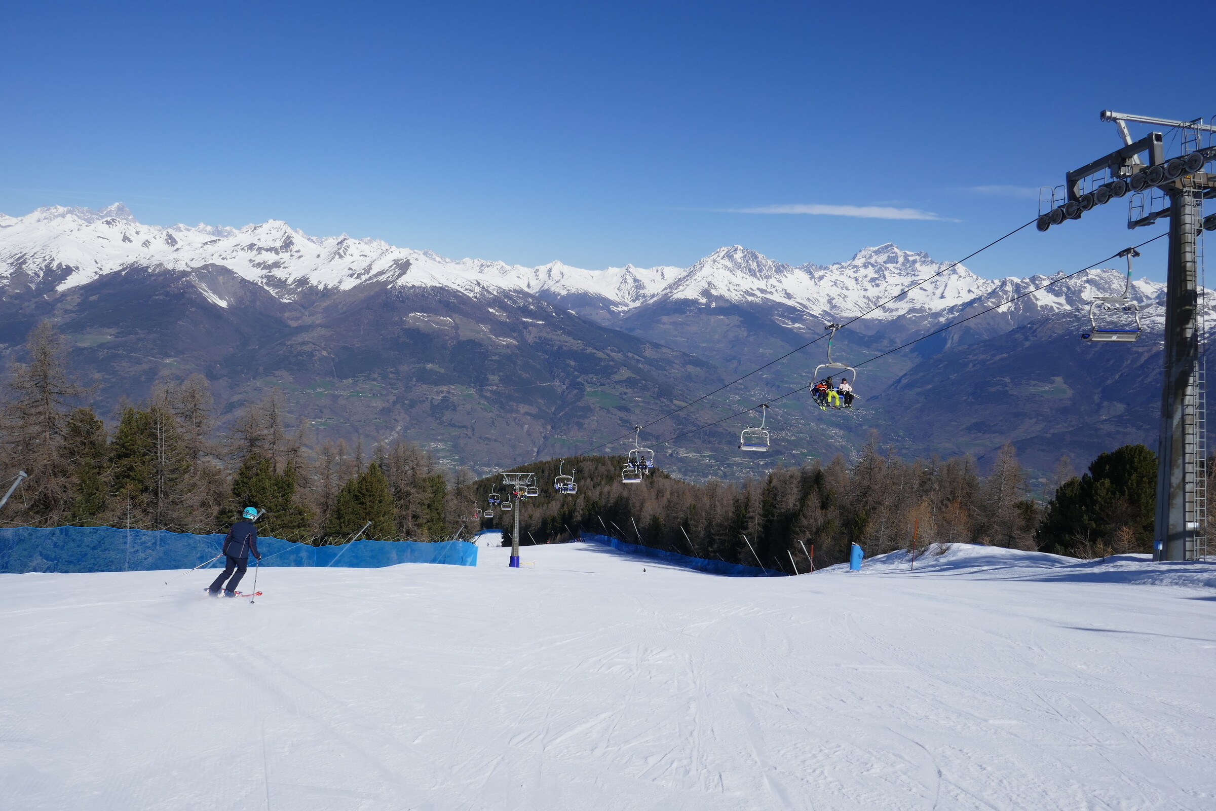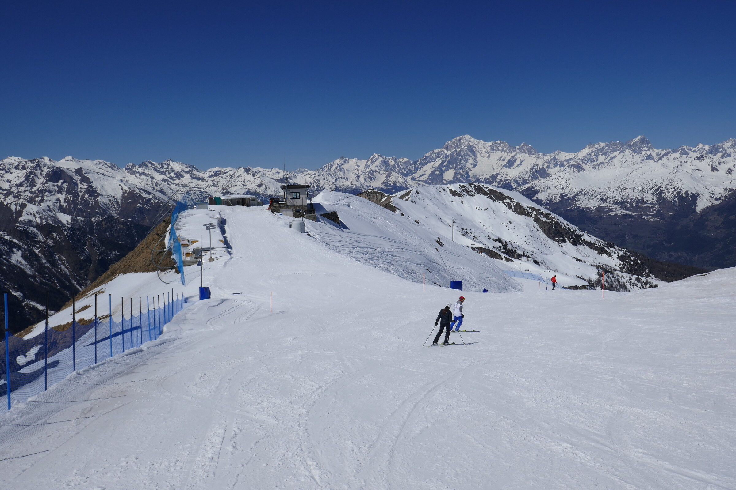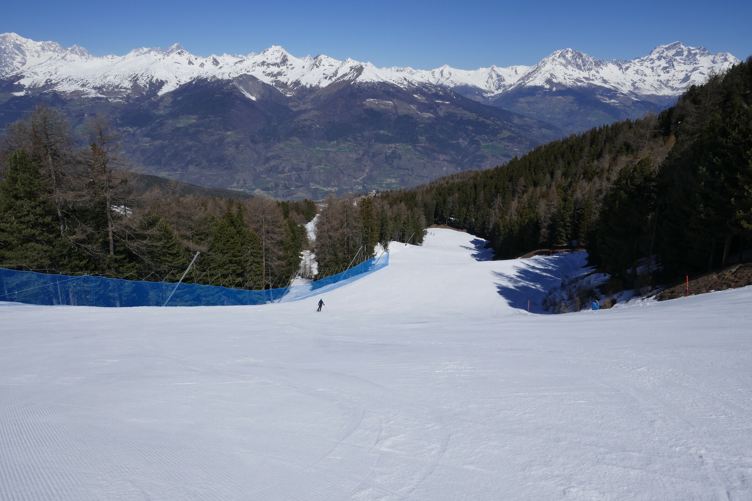 Du Bois weiter unten. Der tolle Winter - Frühling – Winter Kontrast ist allgegenwärtig im Skigebiet wenn man Richtung Aosta schaut.
