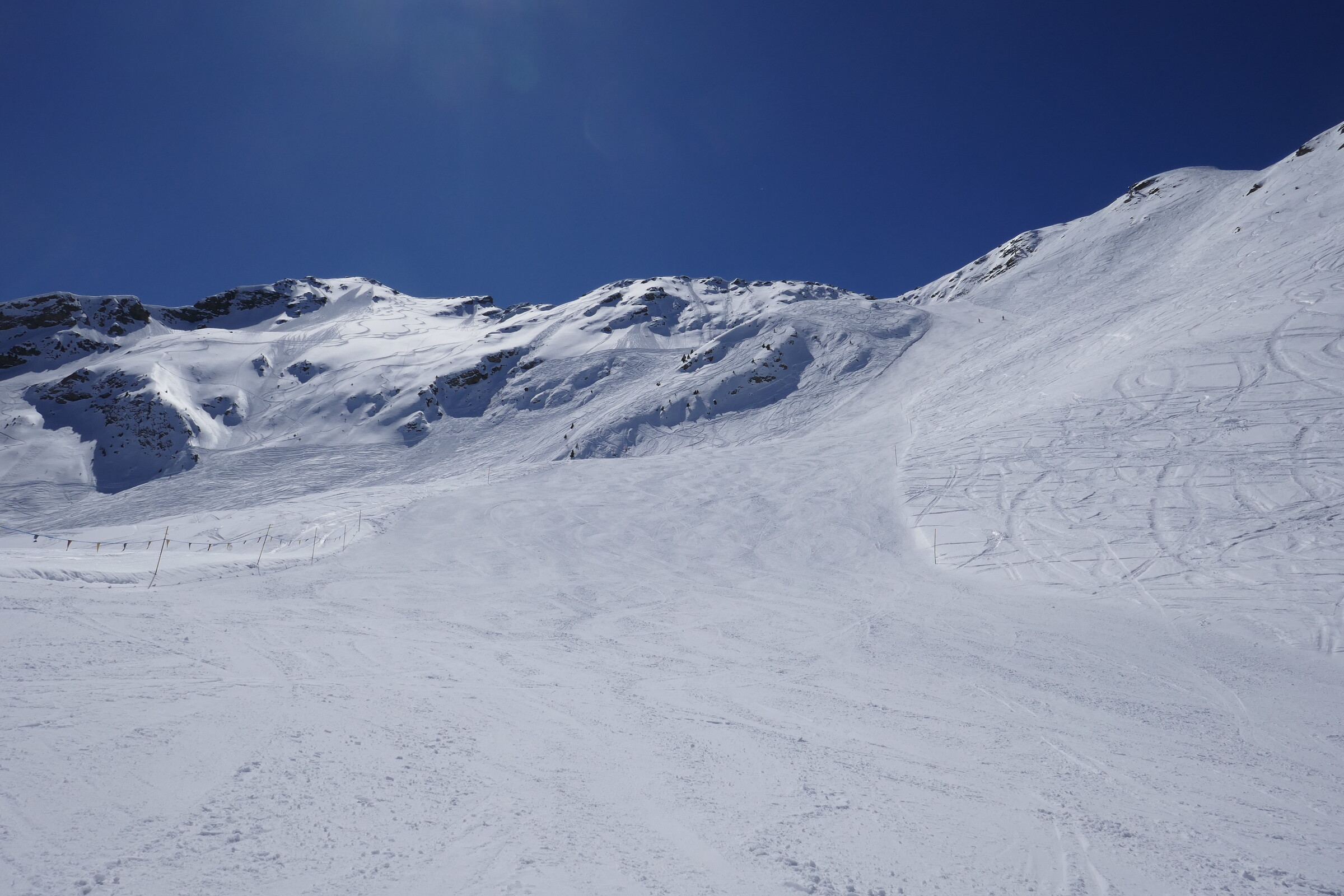 Neben den Gipfelhängen sind die Pisten an der Chamole 4KSB ein weiteres Highlight. Insbesondere die Piste 2, die oft auch für Renntrainings genutzt wird ist genial. Immer mega präpariert, die ganze Piste lang recht steil (dunkelrot), lang und breit. Dazu das mega Panorama ins Tal. Was will man mehr?