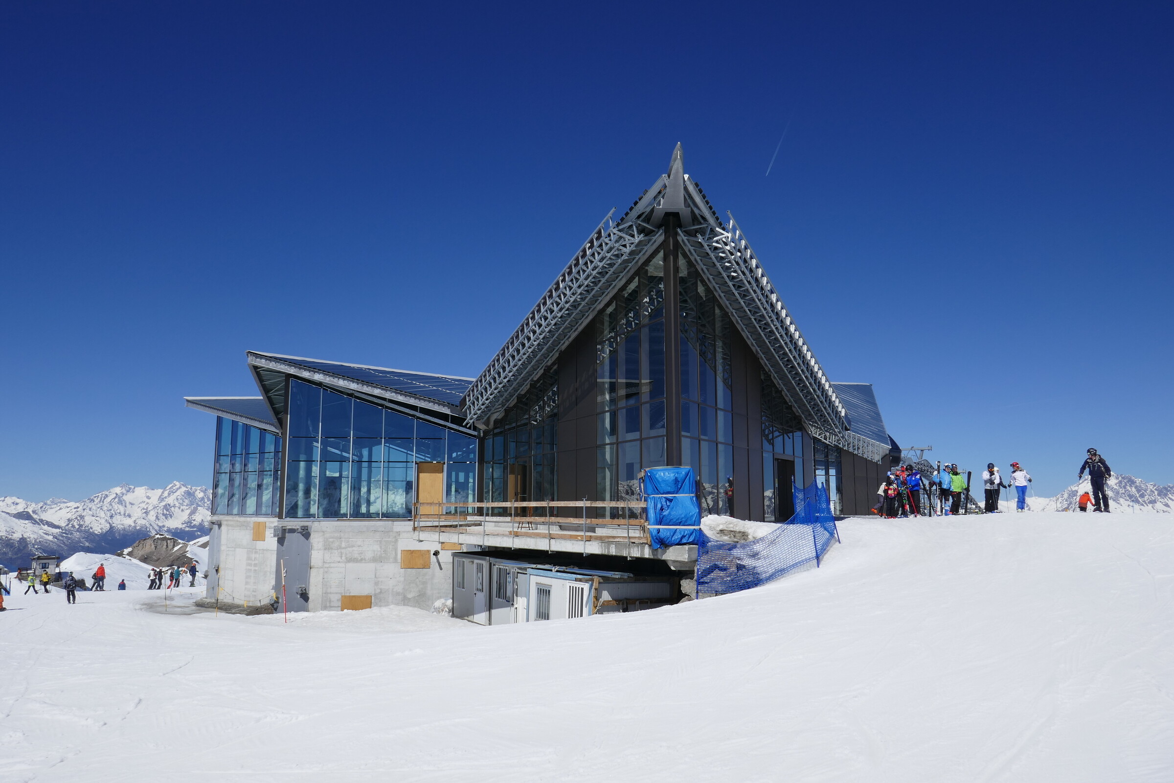 Einfahrt in die noch unfertige Bergstation, in der im Sommer noch ein Restaurant gebaut wird.