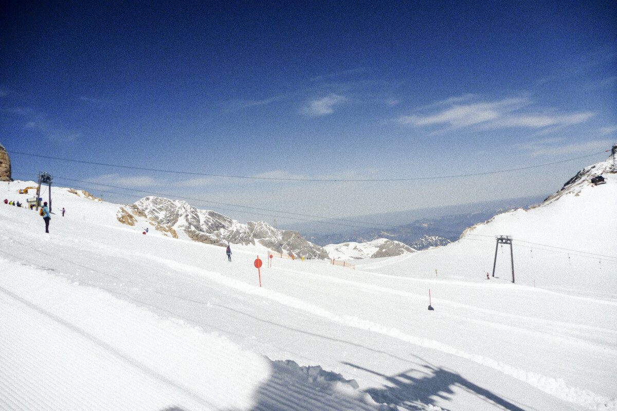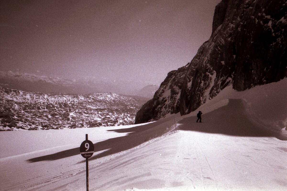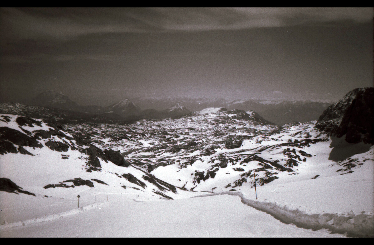 Die Todesvision kam gegen den Liftedurst nicht an. Anstatt der Vorahnung zu folgen und lieber zuhause zu bleiben, setzte ich mich nach Sonnenaufgang ins Auto und fuhr die A 8 in Richtung Dachsteingletscher. Ich wollte das Gebiet endlich, endlich einmal wieder aufsuchen, denn lediglich 1991 war ich einmal als Kind dort gewesen.