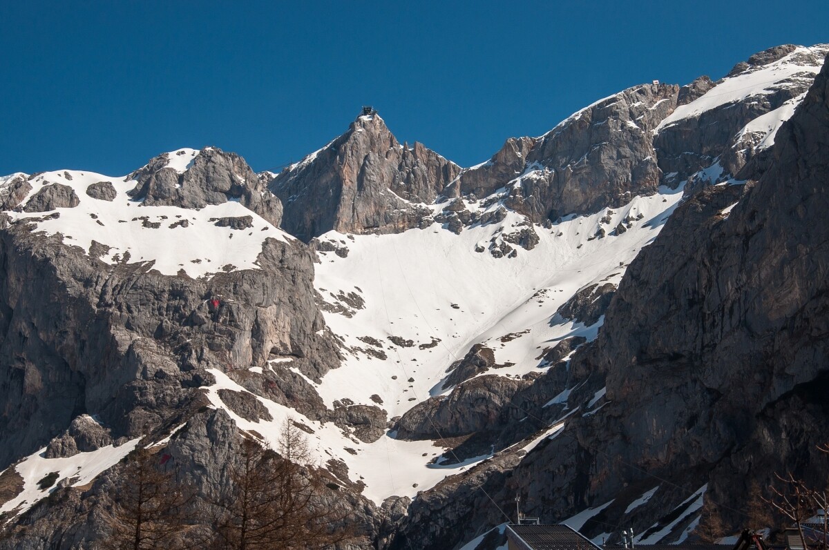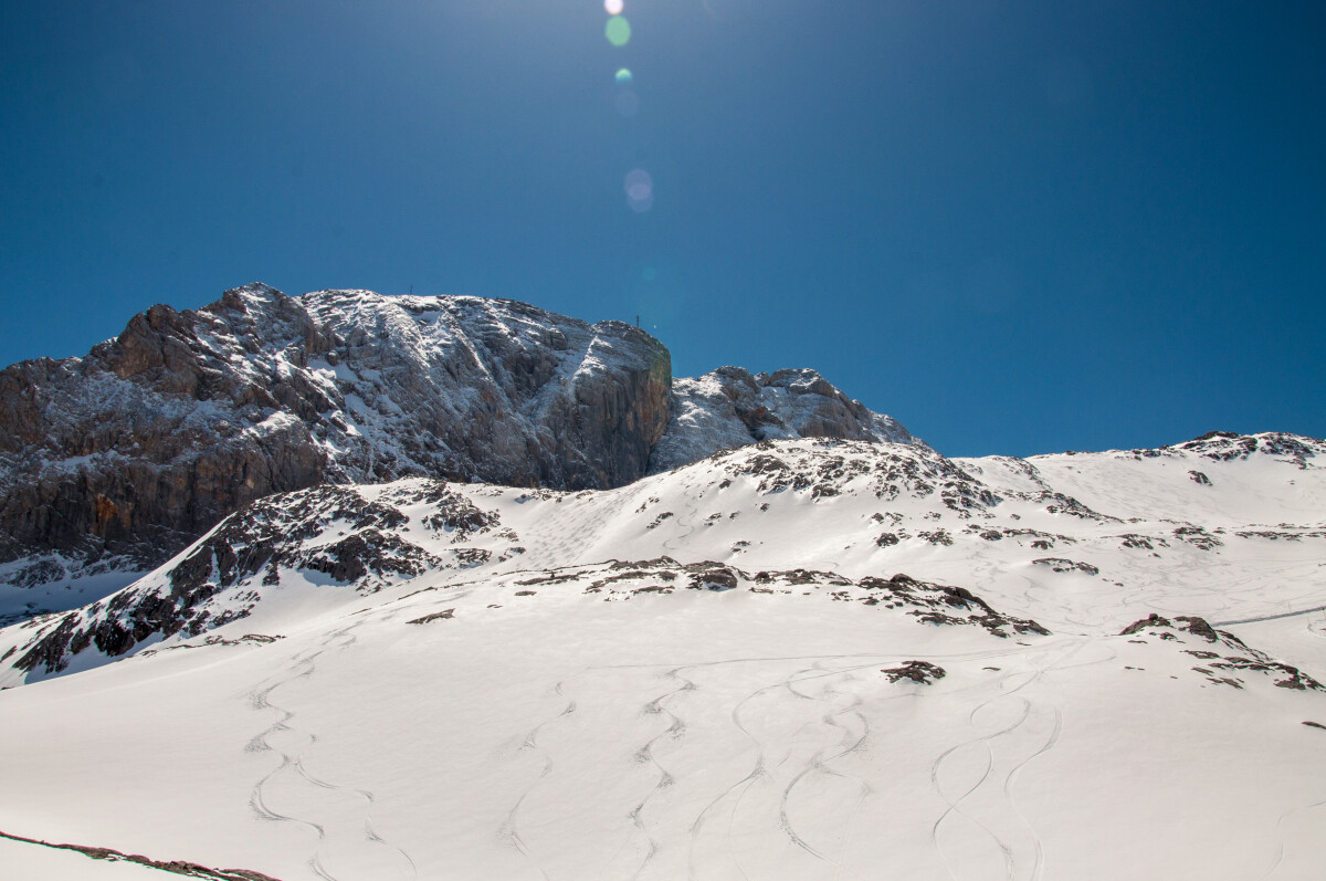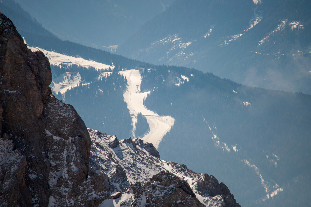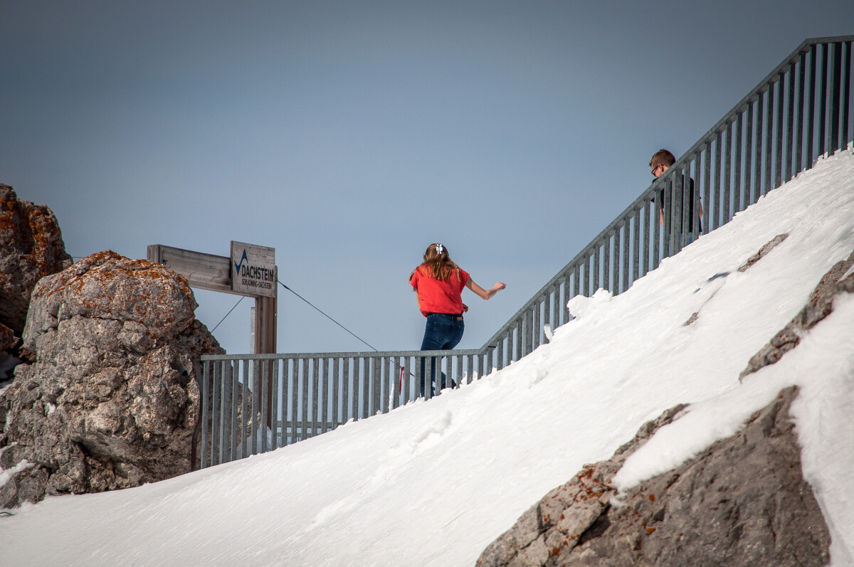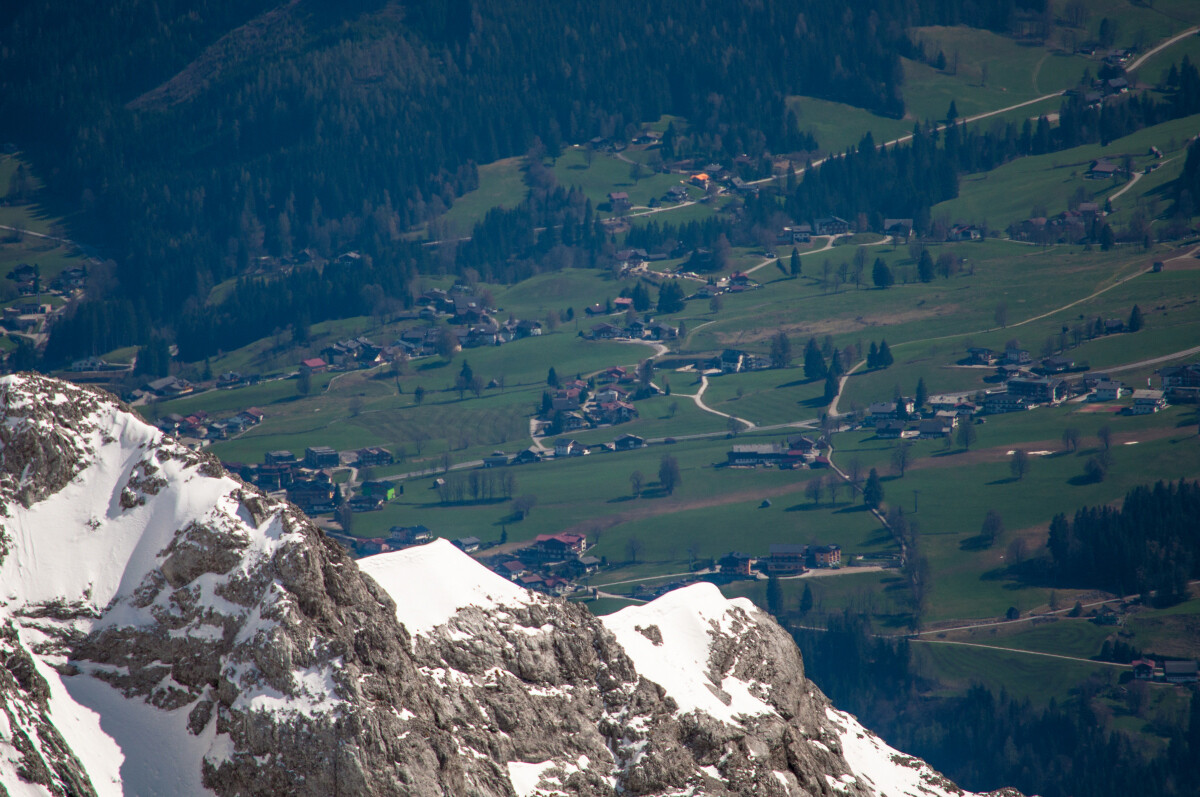 Wenigstens hing mir nicht wieder das obligatorische SUV-Arschloch im Nacken. Schade, dass sie keine Sektion von Ramsau hinauf zur Südwandbahn gebaut haben – man hätte sich das Passstraßengegurke sparen können. Im Hochwinter dürfte das ohnehin kein Vergnügen sein und es gibt ja, glaube ich, auch eine Abfahrt nach Ramsau hinunter.
