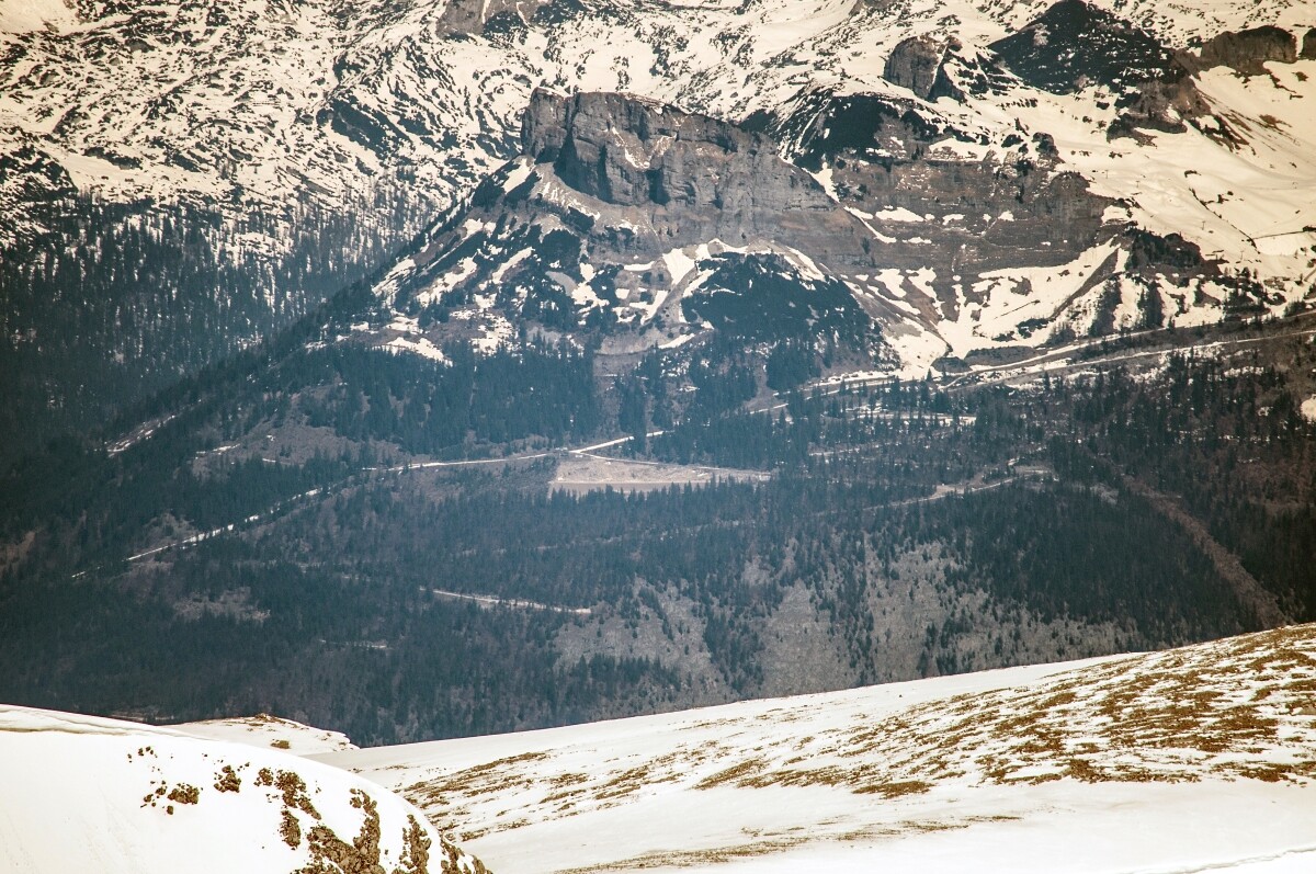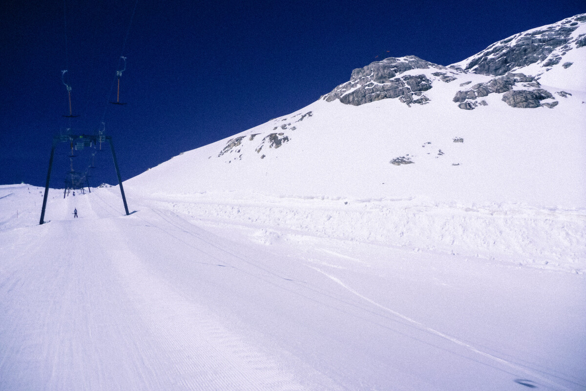 Zwischenstopp zuvor noch am Rittisberg, wo ich mit dem Teleobjektiv zur neuen Planaibahn zoomte – die dritte Generation nun mehr. Die erste (1972-1985) habe ich gar nicht mehr bewusst kennen gelernt. Leider wurde die gute, alte 3KSB von 1980 abgerissen – war zwischenzeitlich auch schon ein interessanter Oldtimer.