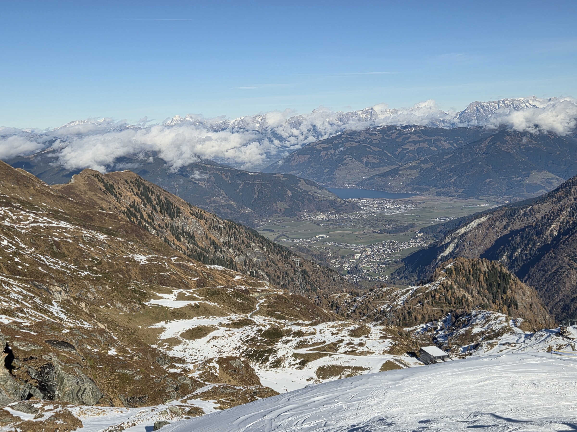 Dafür überzeugt das Gebiet mit dem besten Tiefblick Richtung Zell am See. Auch der Gipfelbereich ist touristisch sehr gut erschlossen und ich hab mir natürlich auch den Tunnel inkl. dem Ausblick nicht nehmen lassen. Der Schnee im Oktober hat dem Gegiet gut getan, denn ich bin mir sicher, das kann hier auch noch viel eisiger sein.