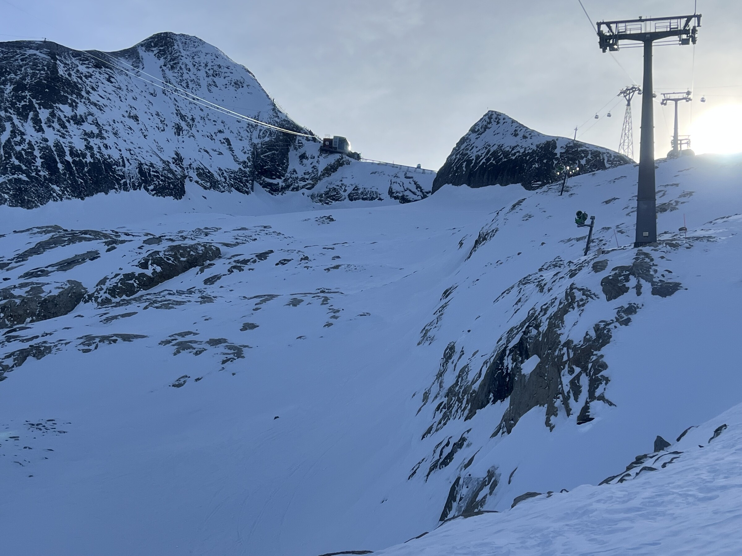 Der "Gletscher" ist lifttechnisch mehr als gut erschlossen. Ich würde mal sagen, dort haben die Lifte im Herbst definitiv mehr Kapazität als das Gebiet verträgt. Das ist in der Vorsaison nichts außergewöhnliches, aber ich behaupte mal, dass sich das hier oben auch im Hochwinter nicht wirklich anders verhält. Der Andrang heute war definitiv in Ordnung aber denoch musste man beim Fahren links und rechts (und natürlich auch hinter einem) schauen, was so rumfährt. Generell sind dort sehr viele osteuropäische Gäste unterwegs. Deutsch/Österreichisch ist sicher in der Minderheit.