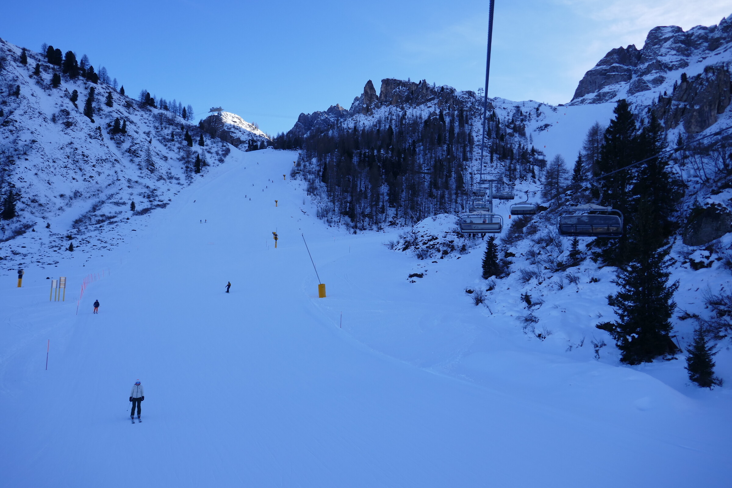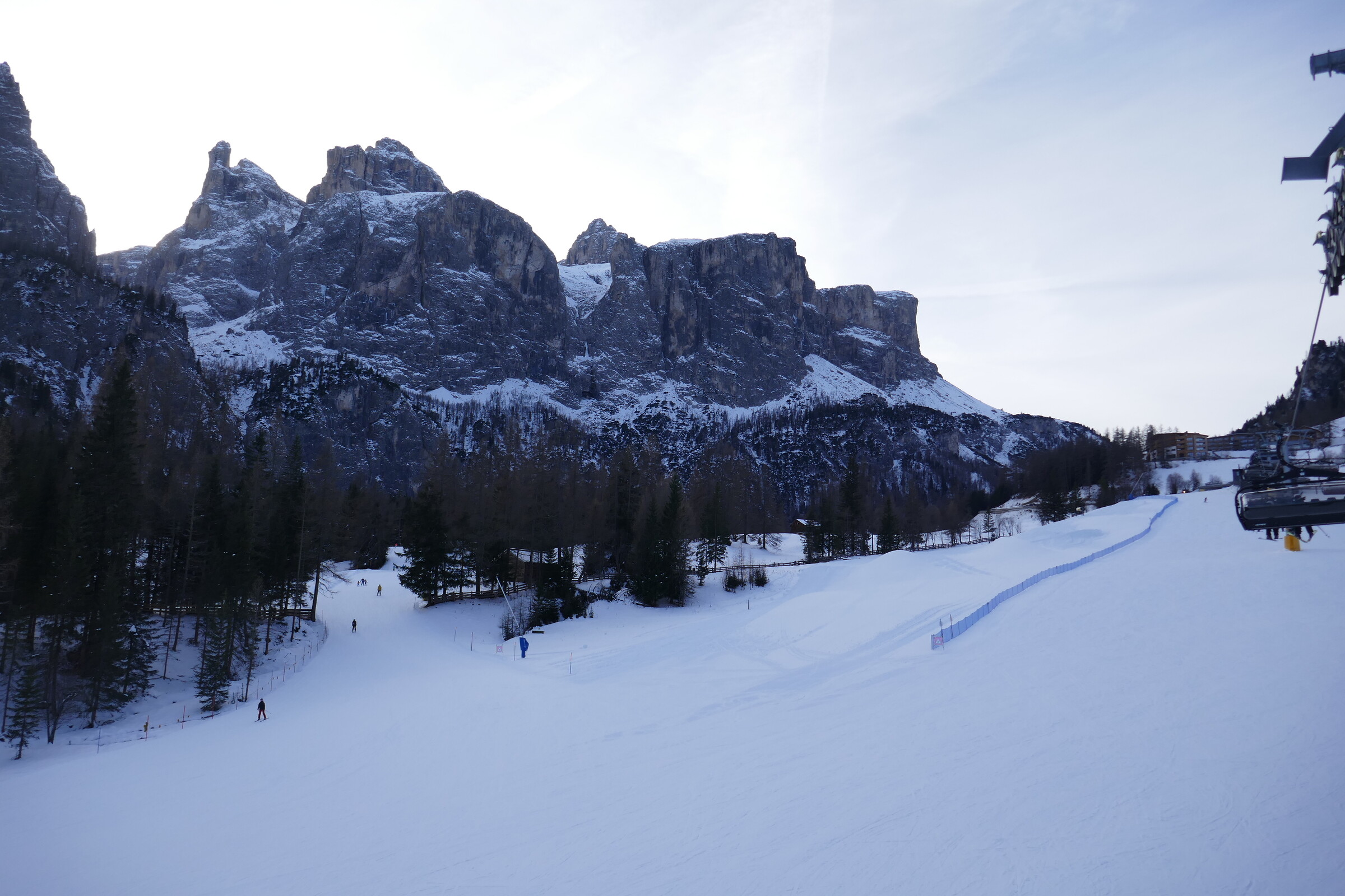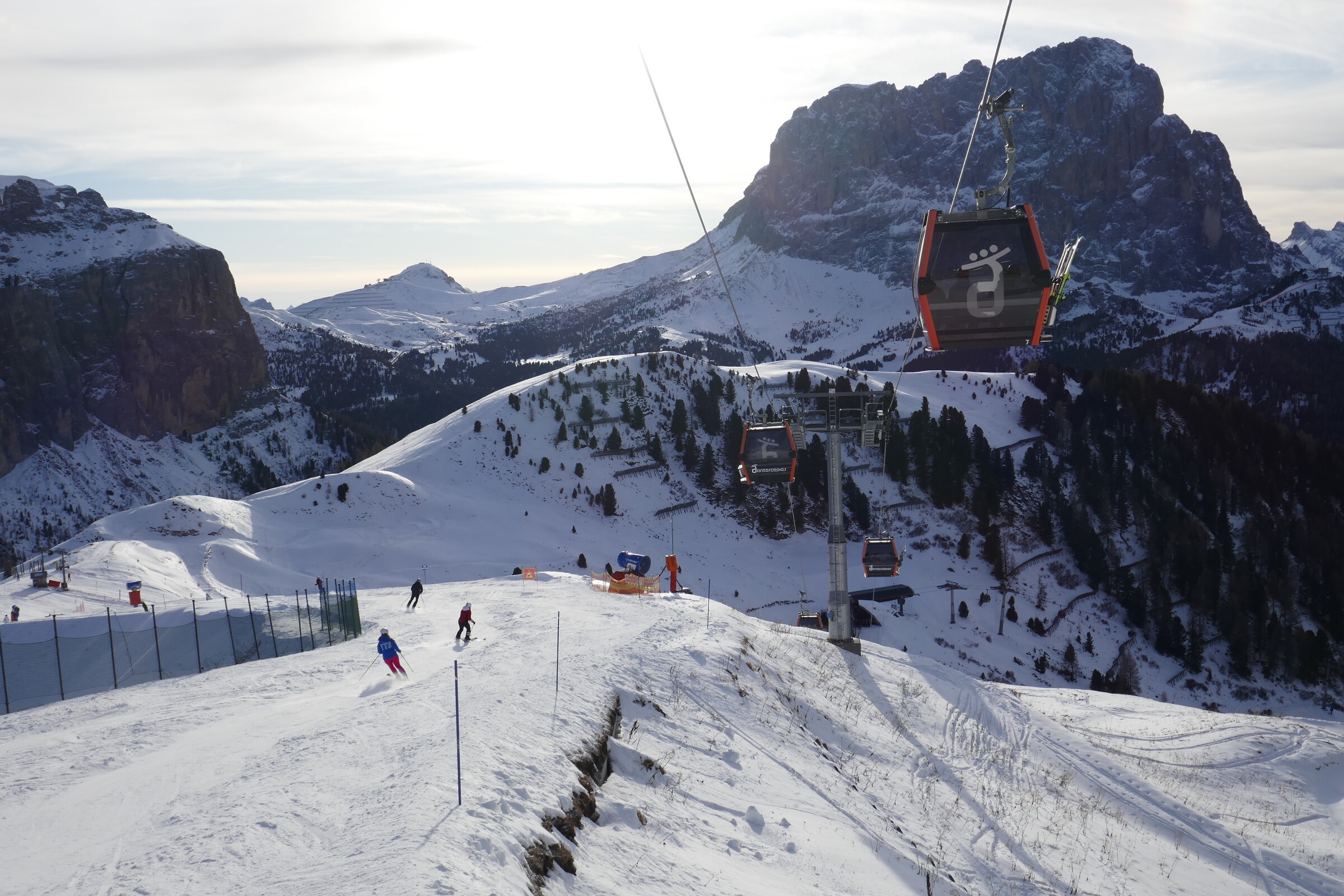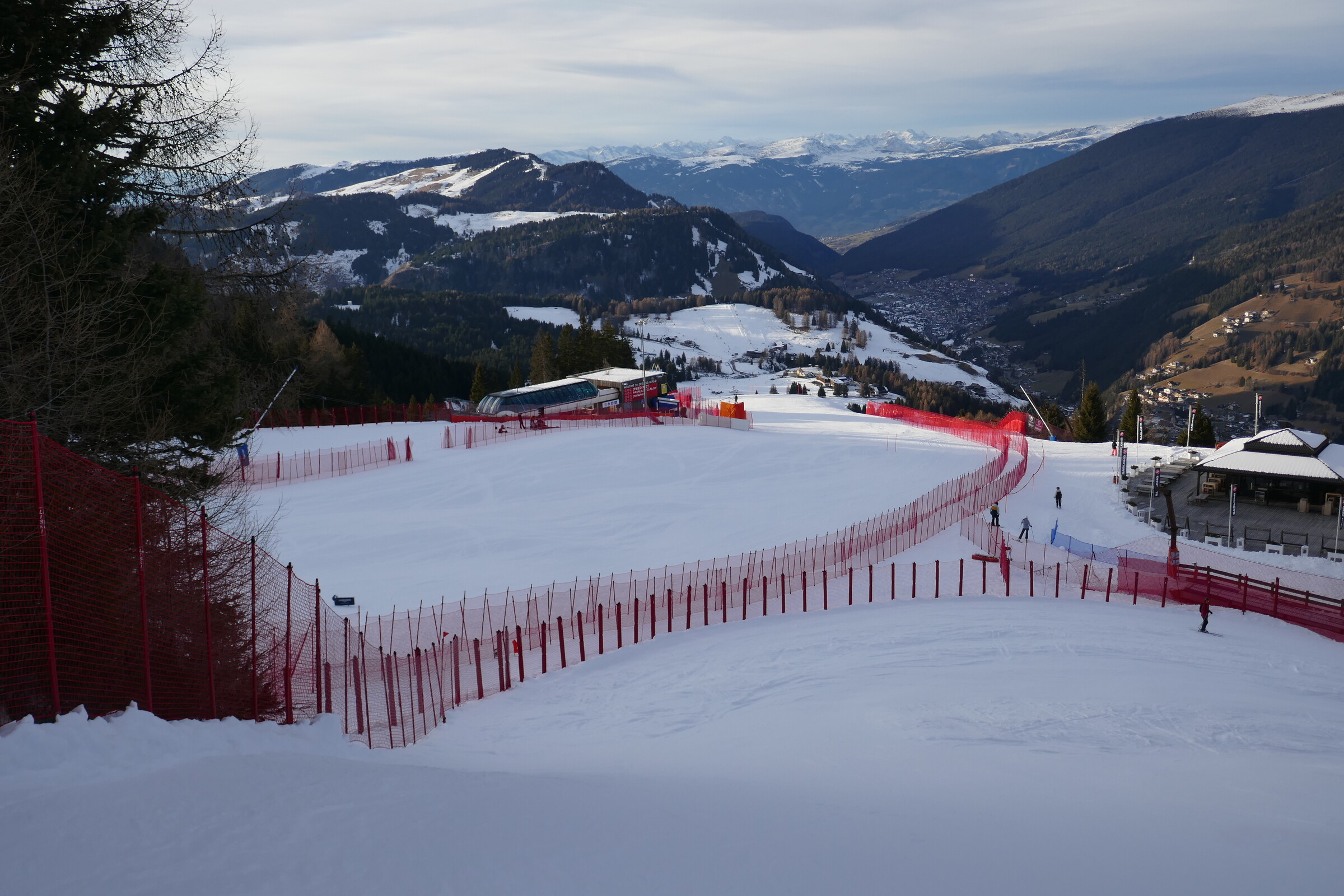 Insgesamt war es, bis auf die Vorbereitungen auf dem Weltcup am Campinoi, recht leer, und kein Vergleich mit der Sella Ronda in der Hochsaison. Aber es war ja auch nur ein Montag Mitte Dezember. Am meisten los war daher in Wolkenstein, sowie am Grödner Joch und in Alta Badia/Colfosco. Aber alles im Rahmen und verglichen mit der kommenden Weihnachtszeit nicht wirklich dramatisch.