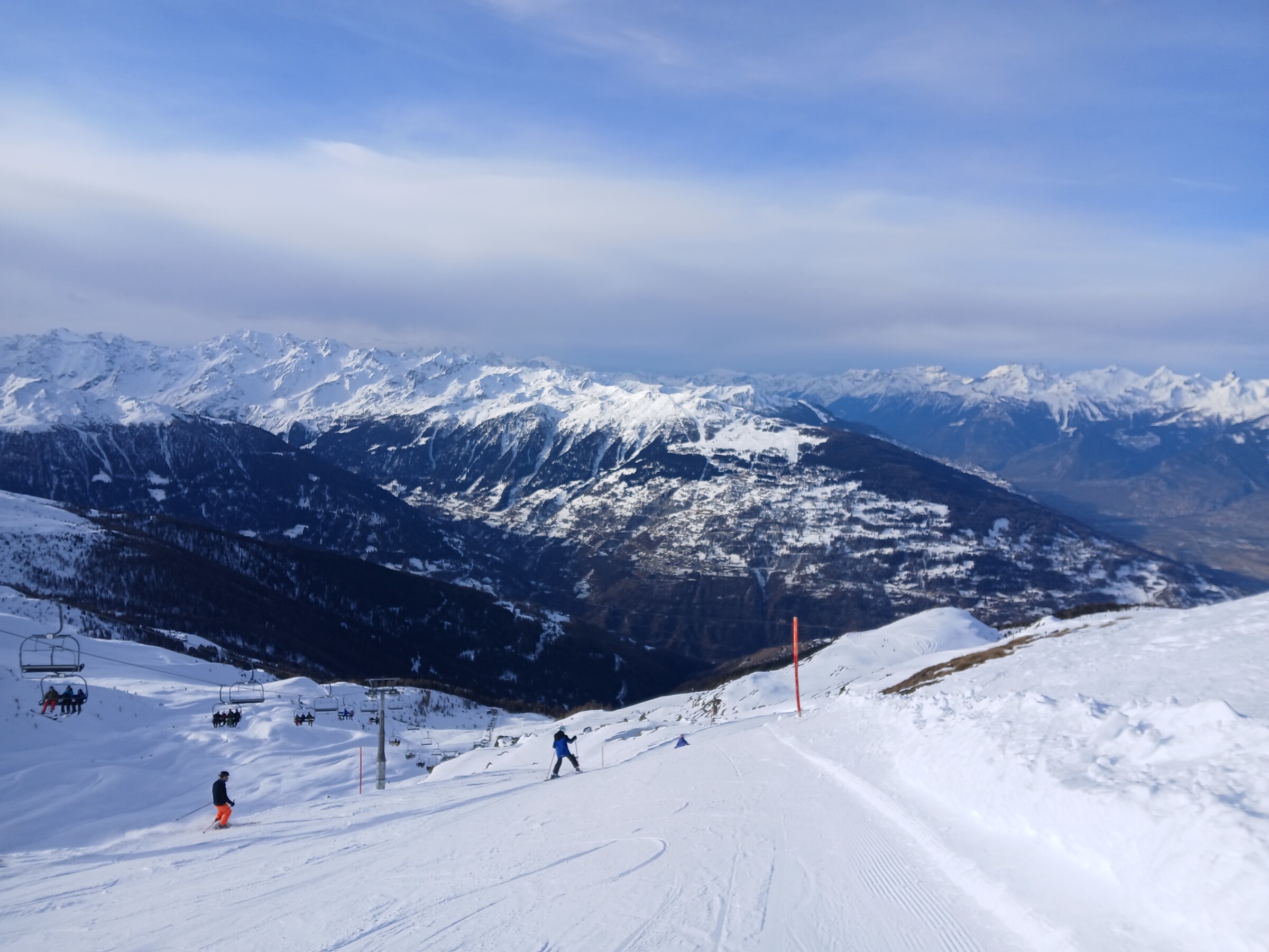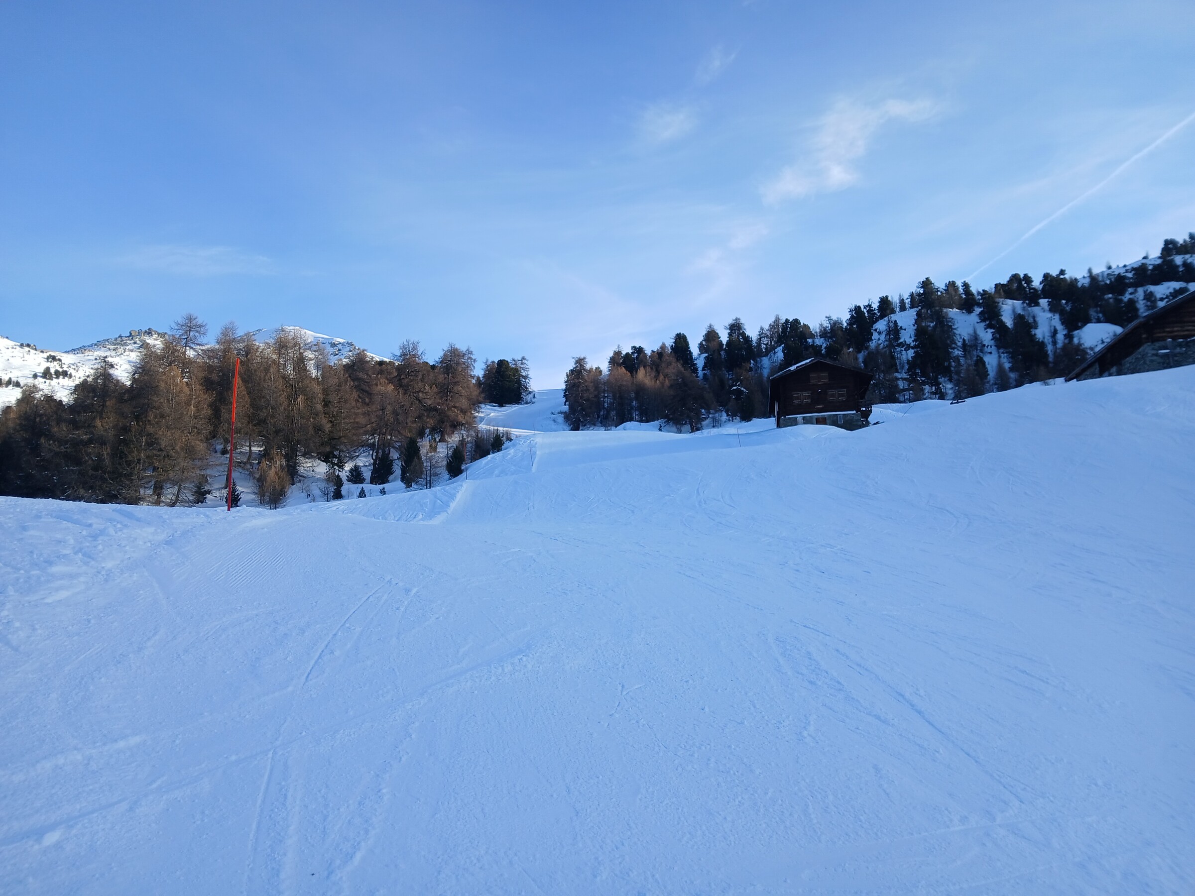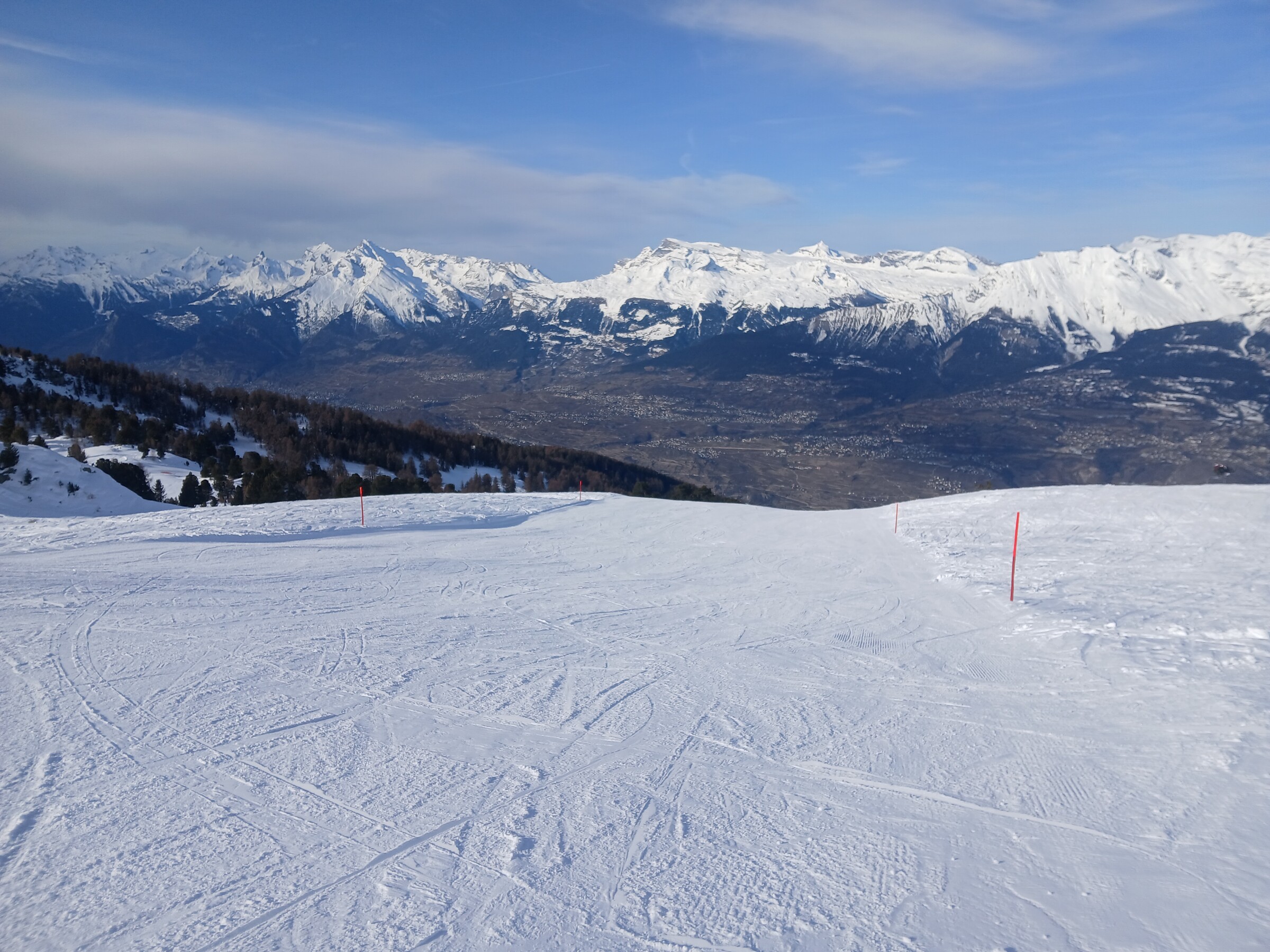 Zweiter Tag der Saison in Nax. Überraschend wenig Leute, keine Wartezeiten an den Liftanlagen. Die Schneequalität ist wirklich gut und die Pisten wie immer perfekt präpariert. Die Combe ist geschlossen, ebenso wie der untere Teil der Grands Esserts und die Talabfahrt unterhalb des SBF Dzorniva. Die Abfahrt zum Parkplatz erfolgt über den Ziehweg. Insgesamt liegt sehr wenig Schnee, es gibt viele Büsche auf den Pisten, aber nur sehr wenige Steine. Insgesamt wirklich gut.