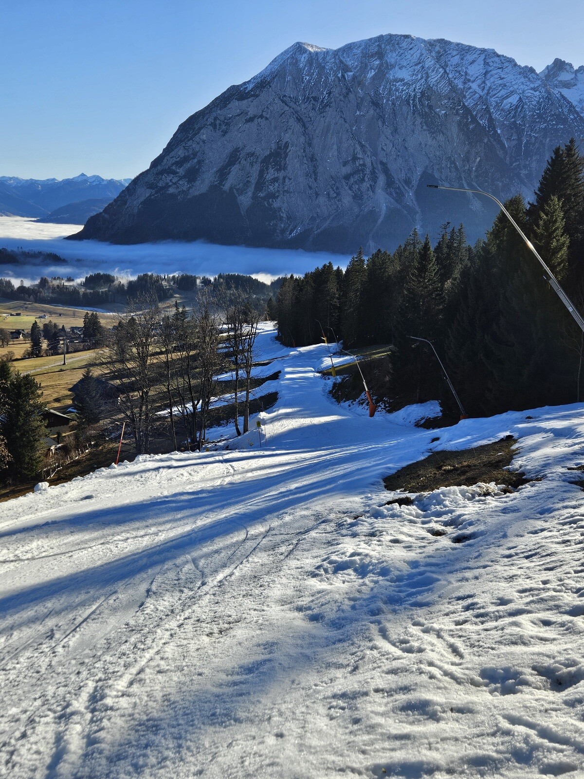 Echt krass, was die ohne nennenswerte Naturschneemengen auf die Beine gestellt haben. Bei den ersten Bildern aus dem Tal denkt man an alles, aber nicht an Wintersport