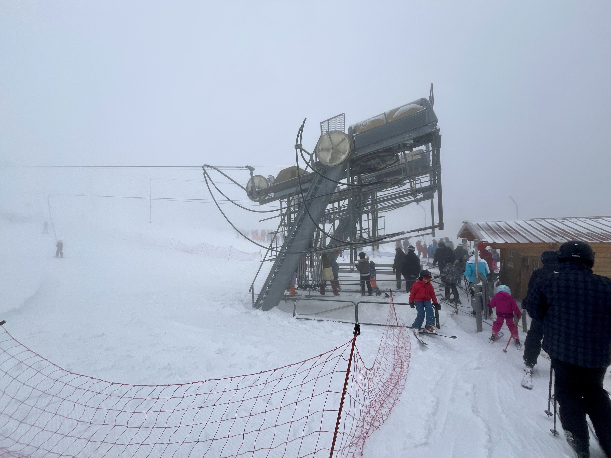 Oben auf den Pisten dagegen „volles Haus“ bei nahezu perfekten Bedingungen an den in die Jahre gekommenen, aber grundehrlich-herzlichen POMA-Schleppern aus den 1960er-Jahren. Vormittags neblig-eisig, spätnachmittags dann „über den Wolken“ mit einem einmaligen Sundowner bei Pistenschluss. 😌