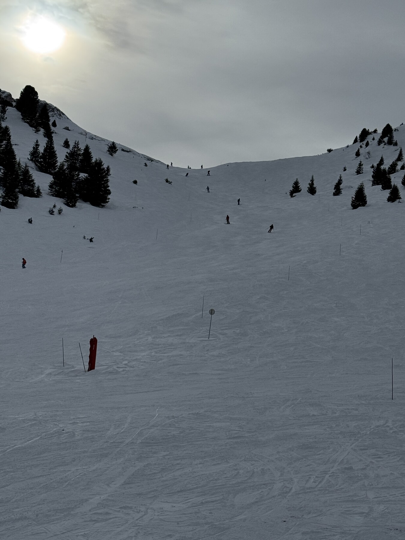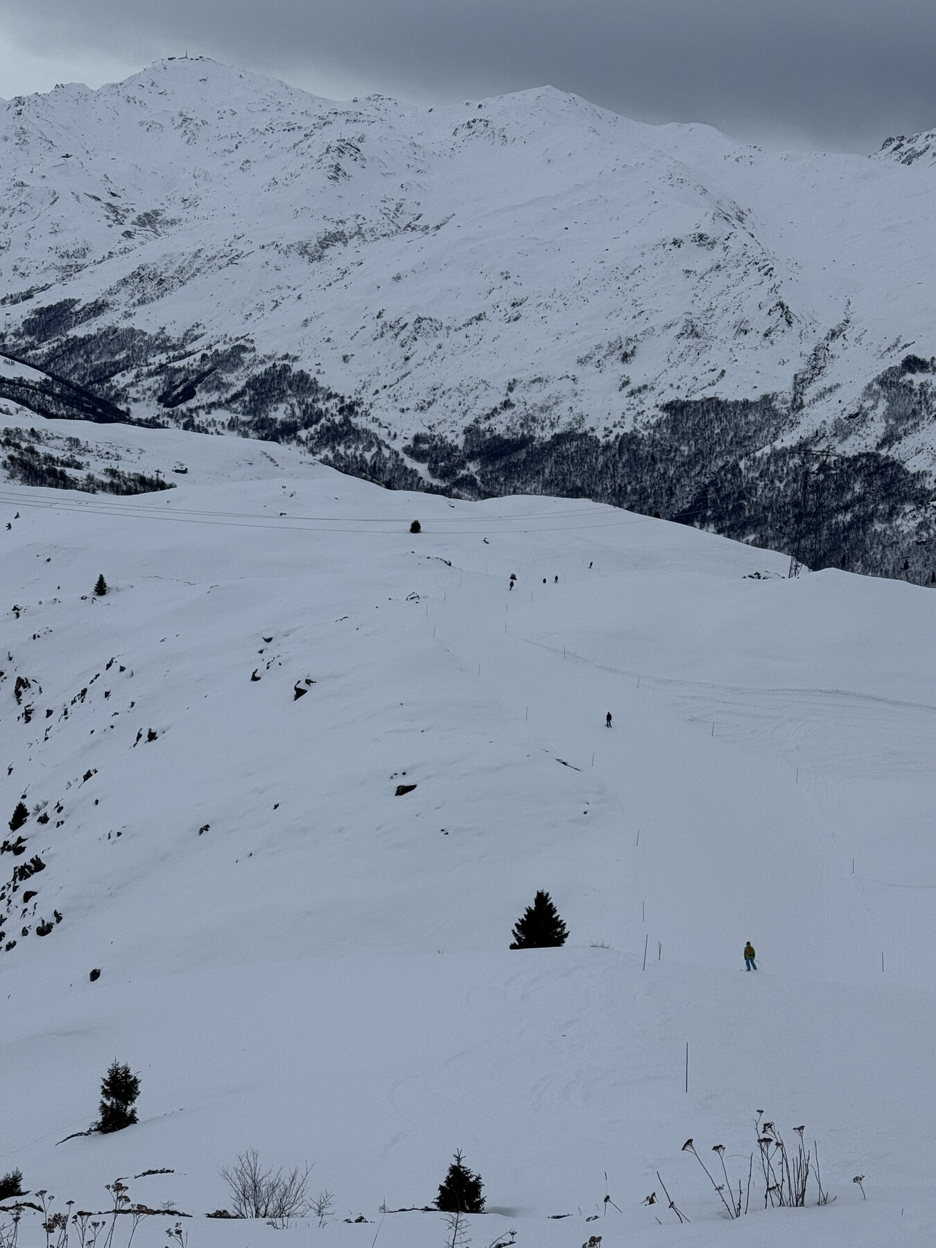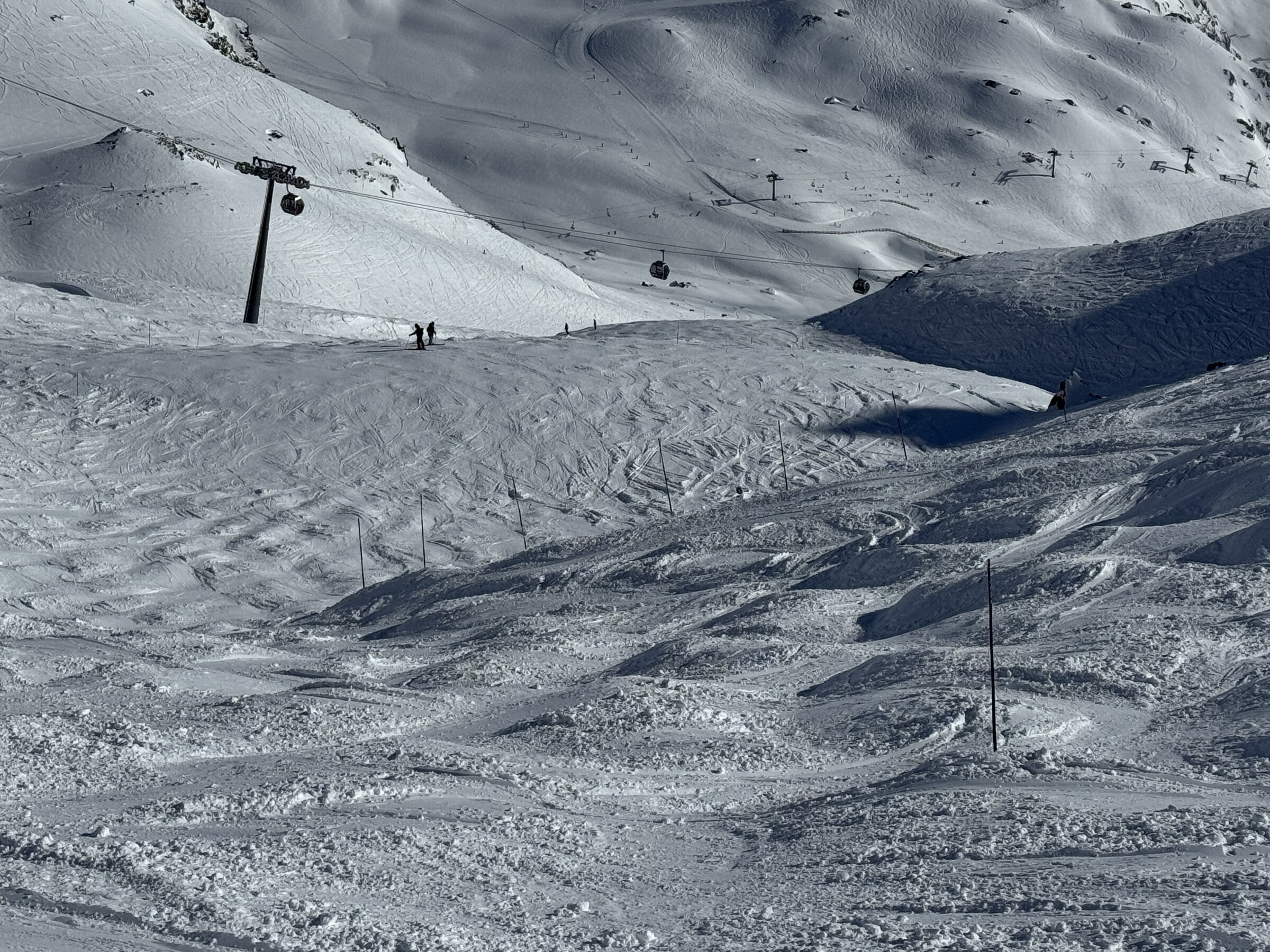 Das letzte Mal war ich 2002 in Meribel, aber es war viel zu warm und regnete bis auf 2000 Meter. Folglich waren die oberen Regionen ziemlich voll und es ging recht zu auf den Pisten.
