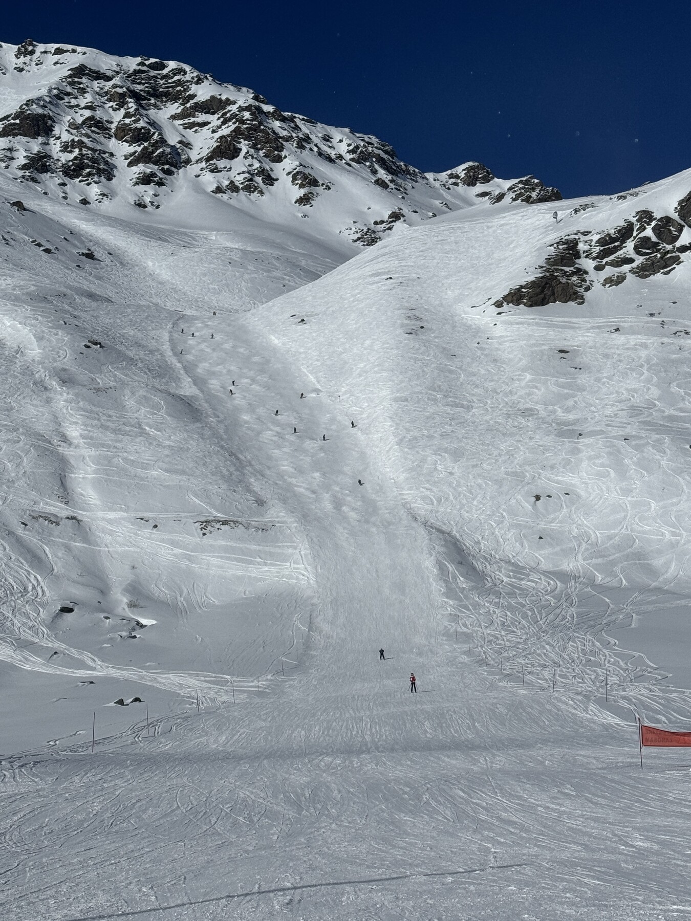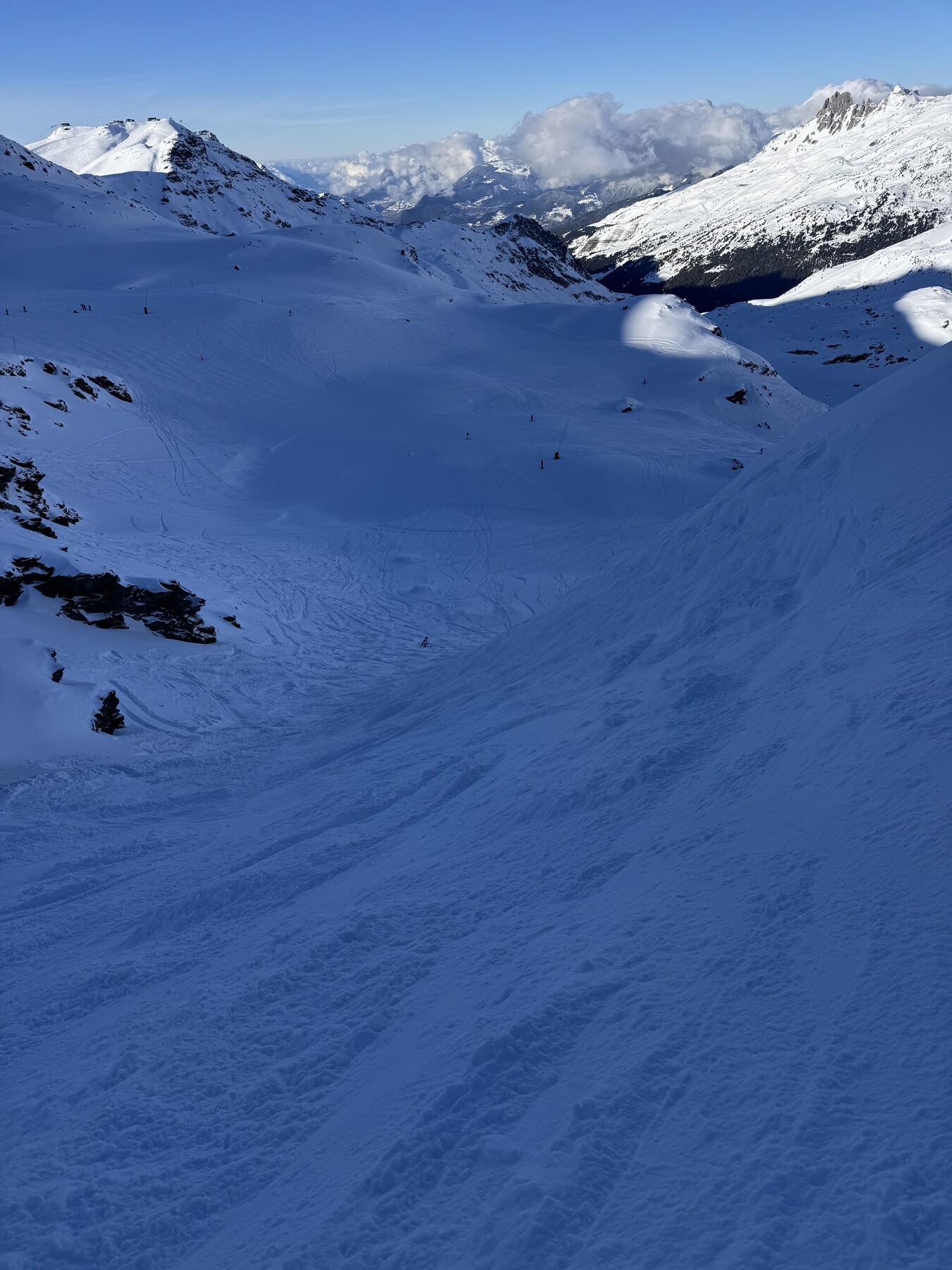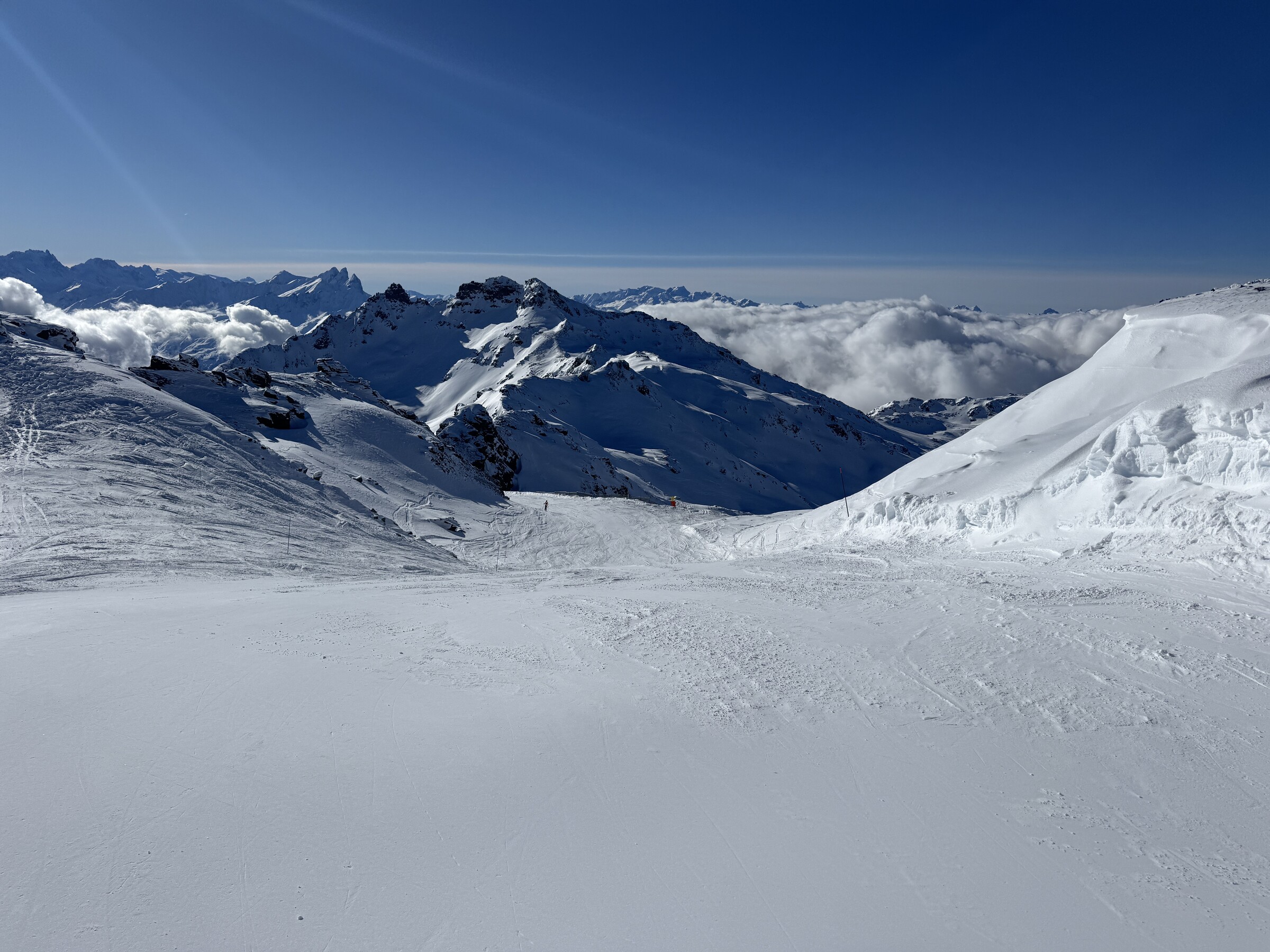 Das letzte Mal war ich 2002 in Meribel, aber es war viel zu warm und regnete bis auf 2000 Meter. Folglich waren die oberen Regionen ziemlich voll und es ging recht zu auf den Pisten.