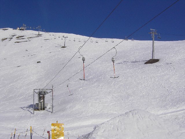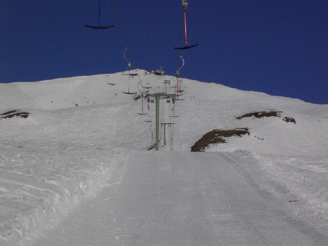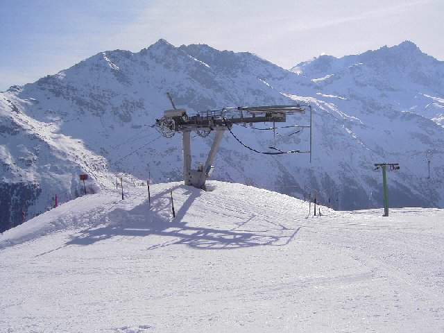 Hat man nun nach der Fahrt mit der Pendelbahn die Bretter unter den Füßen, hat man die Qual der Wahl. Entweder fährt man die rote Piste zur neuen kuppelbaren 4er Sesselbahn „Chiesso“ (seit dem Winter 2004/2005), oder man nimmt direkt den Skilift „Combe“. Beide Lifte bringen einen zur Talstation der fixgeklemmten 4er Sesselbahn „Corne de Sorebois“. Hier an der Bergstation des Bügelliftes „Combe“ und der kuppelbaren 4er Sesselbahn „Chiesso“ auf 2650m Höhe befindet sich auch das süße kleine Restaurant „Buvette“ mit Imbissterrasse, inmitten der Pisten. Bei einer kleinen Pause hat man eine super Aussicht auf die Walliser Alpen.