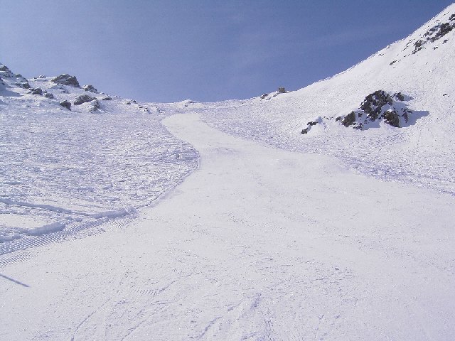 Plus: Herrliche, breite Abfahrten, Ursprünglichkeit des Tales, relativ leeres Skigebiet, lange Saison bis Mitte April; meistens offene Talabfahrt bis Ende der Saison, Höhe des Skigebietes, Steilheit des Skigebietes (für Könner)
