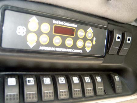 BR2000 Dachraum, Bedienung der Heizung und Lüftung, darunter Schalter für Beleuchtung usw.