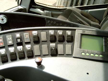 Br2000 Seitenkonsole, rechts der Bildschirm zeigt die Fahrzeugdaten.