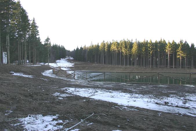 Der neue Speicher ist randvoll und hat schon die erste düne Eisschicht.