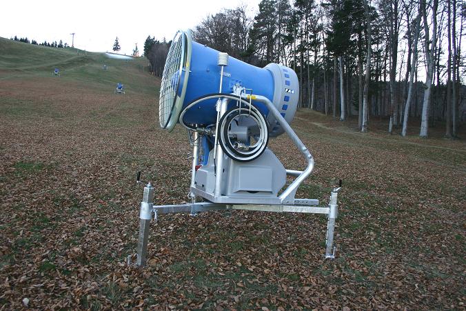 Der einzige Lichtblick: durch die heuer neu gebaute Schneileitung kann man jetzt mehr Schneekanonen auf einmal aufstellen, es standen 8 auf der etwa 700 m langen Piste: