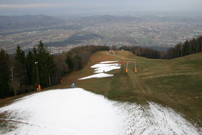 Es reicht mit dem Tauwetter :evil: , Pohorje ist doch kein Sommerskigebiet. +12 bei der Bergstation der Gondelbahn un Zehn, + 14 in Maribor am Nachmittag - das alles hatten wir auch in den vergangenen Jahren schon gesehen, aber nicht über einen so langen Zeitraum. Und das bleibt nicht ohne Folgen für die Pisten :cry: .