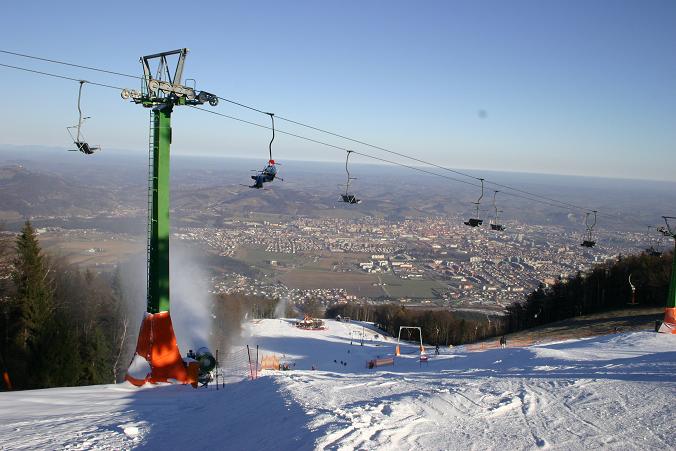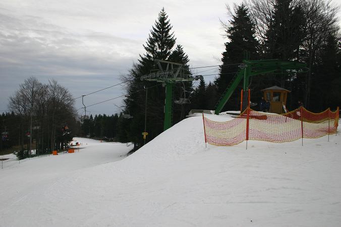 Kurz vor der Bergstation der DSB Radvanje. Offen ist die reche der beiden Pisten im Bild, die linke direkt unter der DSB Postela wurde noch nicht beschneit.
