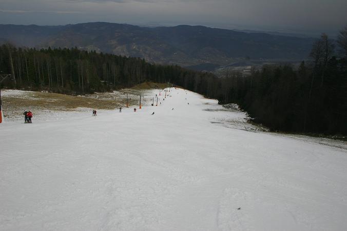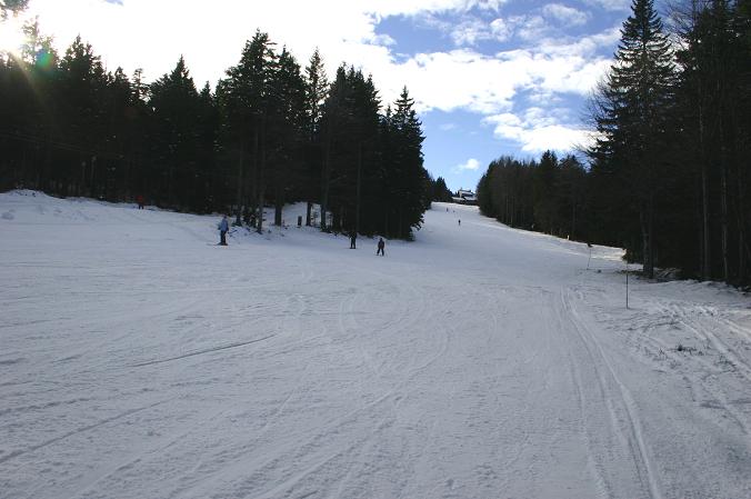 Cojzarica: endlich auch die westliche der beiden Pisten offen, allerdings nur etwa 1/2 Pistenbreite beschneit.