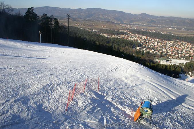 Ach ja, in Betrieb immer noch die selben Lifte wie schon seit 3 Wochen, ab Freitag soll aber die Talabfahrt und mit ihr die DSB's Radvanje und Postela sowie der SCHL Habakuk den Betrieb aufnehmen :lol: . Kein wunder, von 900 m bis ins Tal stehen ganze 36 Kanonen! Endlich wieder richtig skifahren, die eine flache Piste an der DSB Sleme wird (sogar mir) schon langsam nervig :x ...